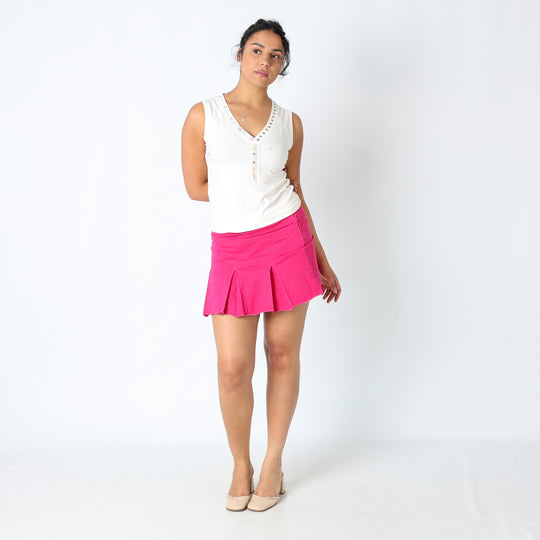 Pink 90s United Colours of Benetton Woven Mini Skirt (10)