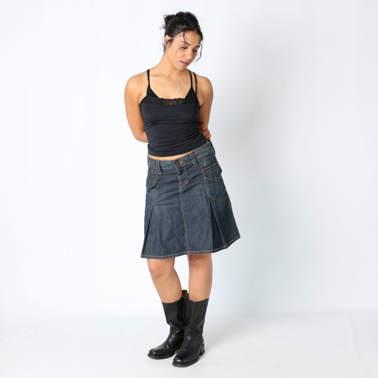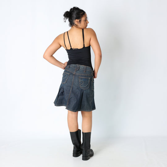 Navy Blue 90s Wrangler Denim Midi Skirt Pleated Pocket Detail (S)