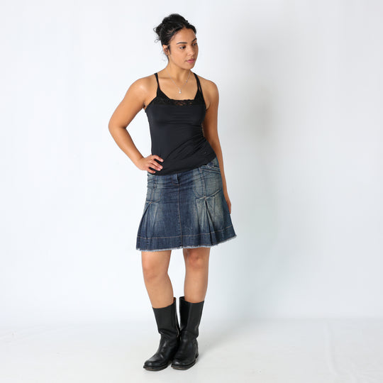 Navy Blue 90s Rinascimento Denim Midi Skirt Pleated Wash (S)