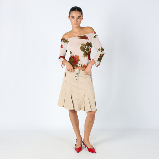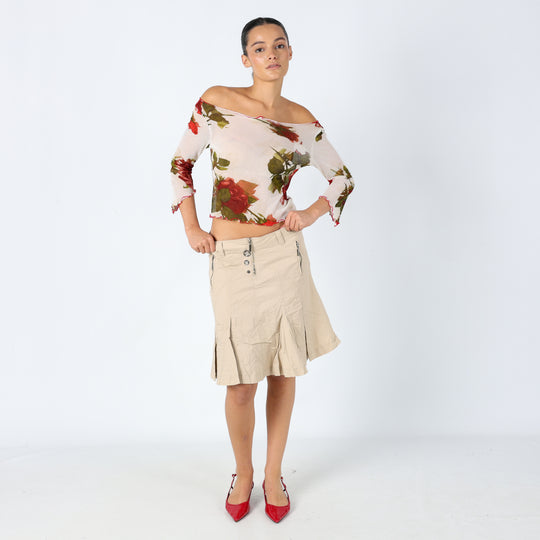 Beige 90s La Nigna Mala Woven Midi Skirt Button and Zip Detail Pleated (S)