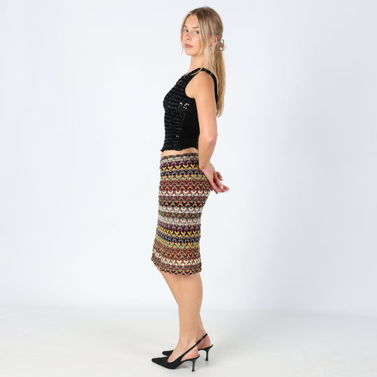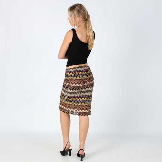 Multi Colured 90s Unbranded Woven Midi Skirt Italian Unique Woven Pattern (S)