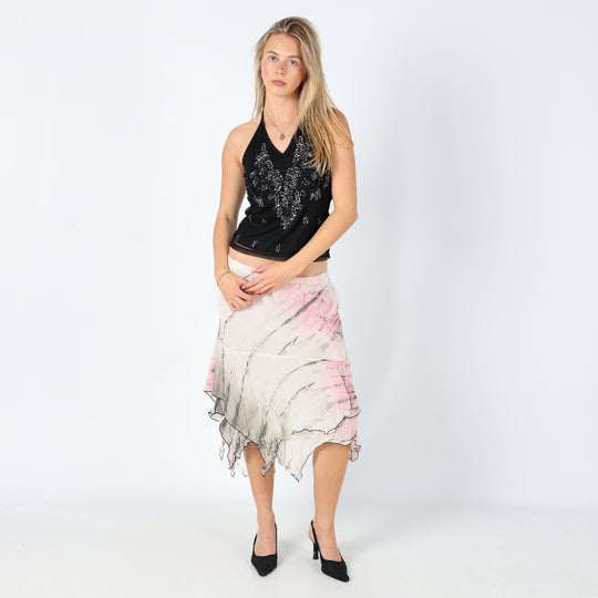 Ivory 90s Unbranded Mesh Midi Skirt Italian Gorgeous Unique Floaty (S)