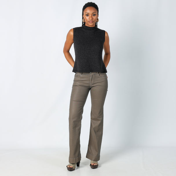 Khaki Green y2ks Cop Copine Woven Trousers Blue Contrast Stitch (S)