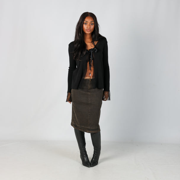 Brown y2ks Tenax Denim Midi Skirt (S)