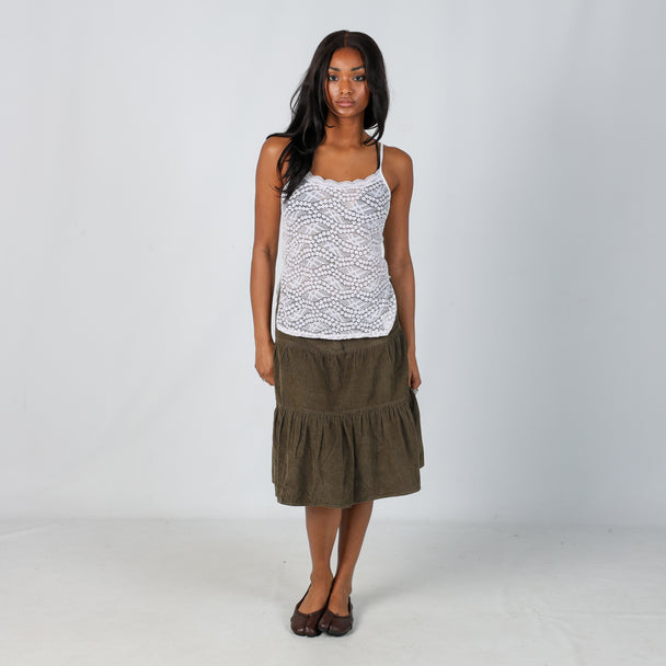 Dark Green y2ks Blind Date Cord Skirt (S)