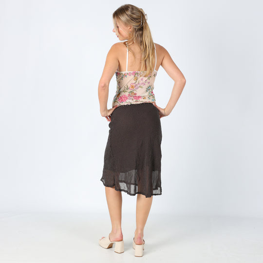 Brown 90s Habana Mesh Midi Skirt Chic Lace detailing Polkadot (8)