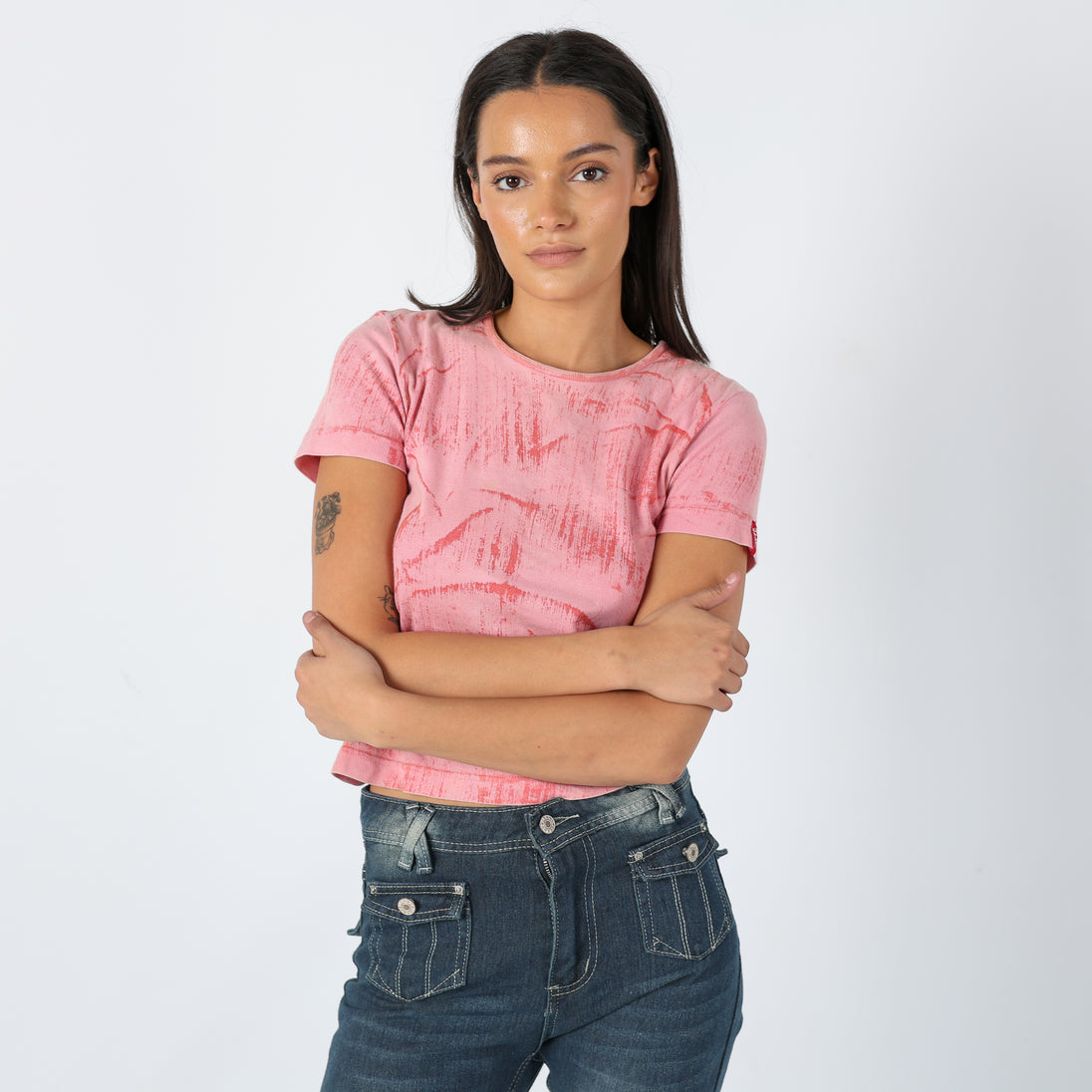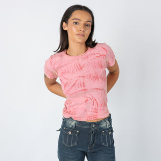 Baby Pink 90s Miss Sixty Woven Top Printed Tee Cute (S)