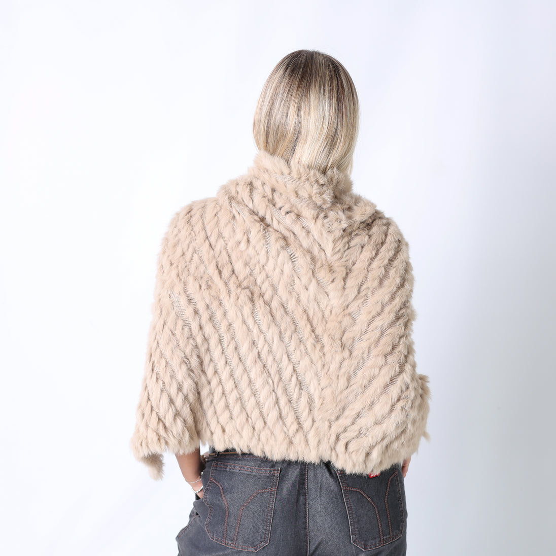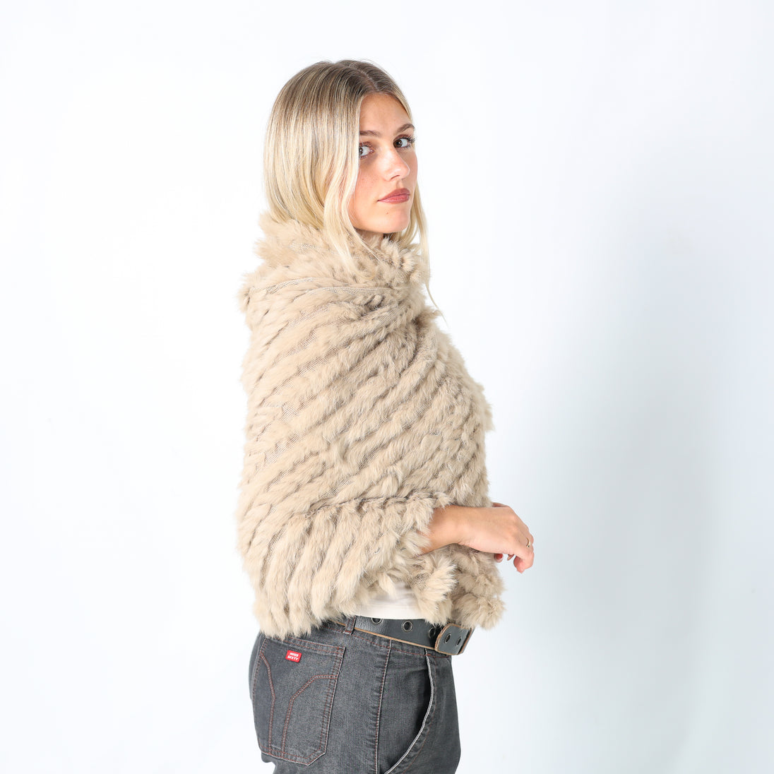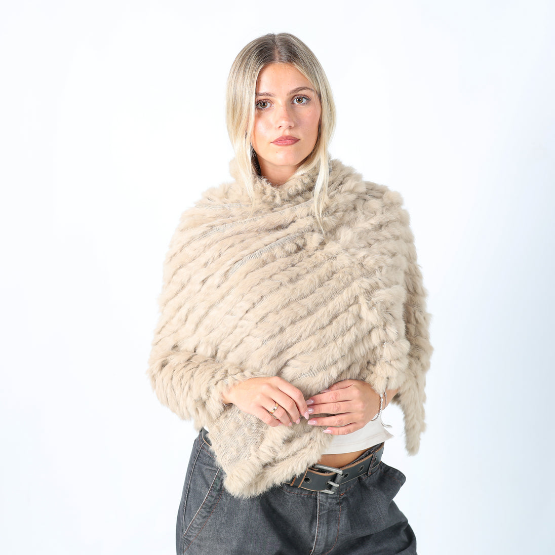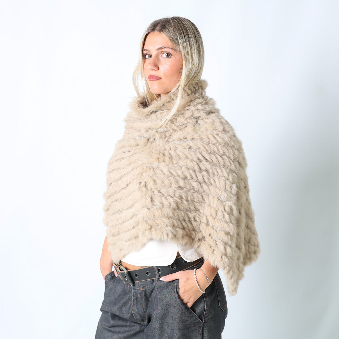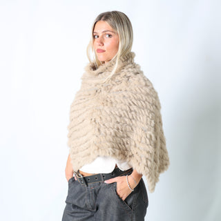 Beige y2ks Conbipel Knitted Top Fur Poncho (M)