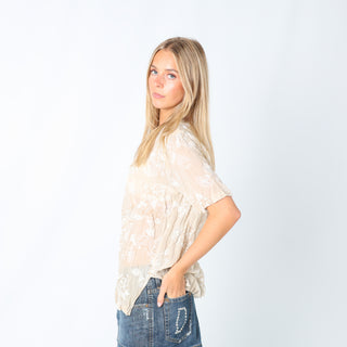 Beige y2ks Unbranded Blouse Semi Sheer Floral (M)