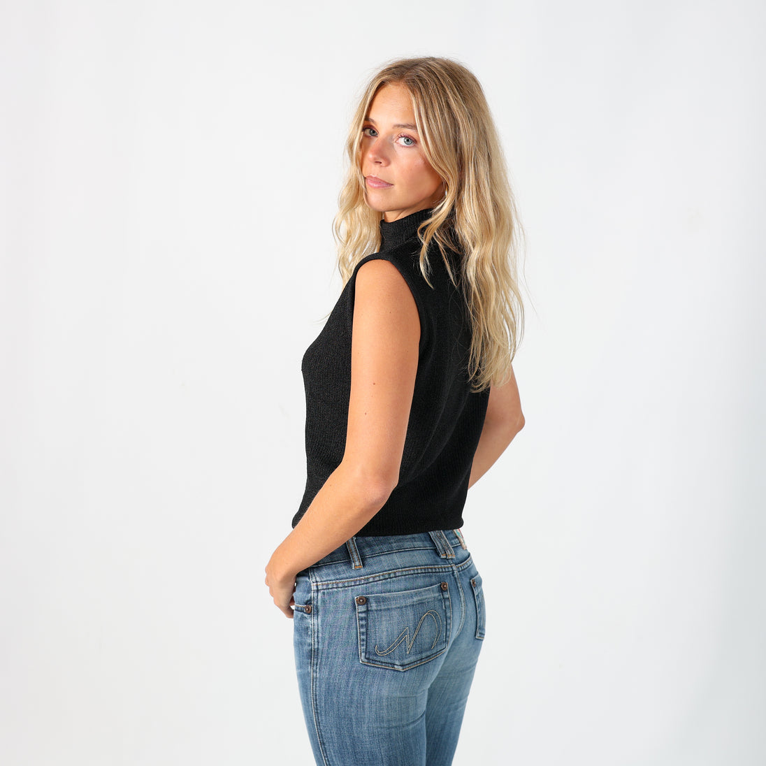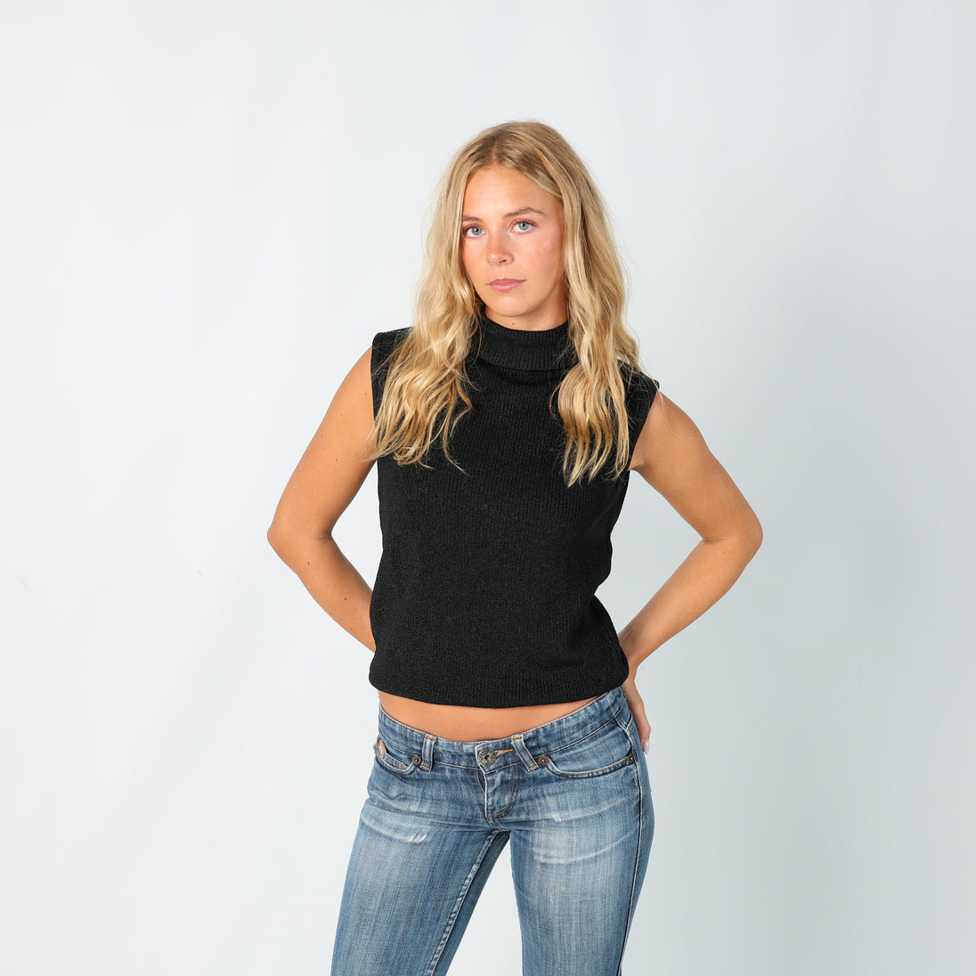 Black 90s Broadway Woven Top Turtle Neck (M)