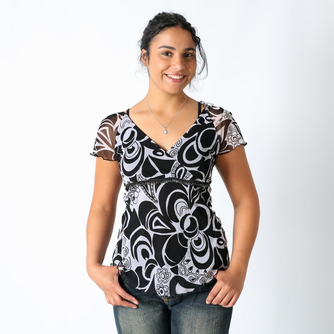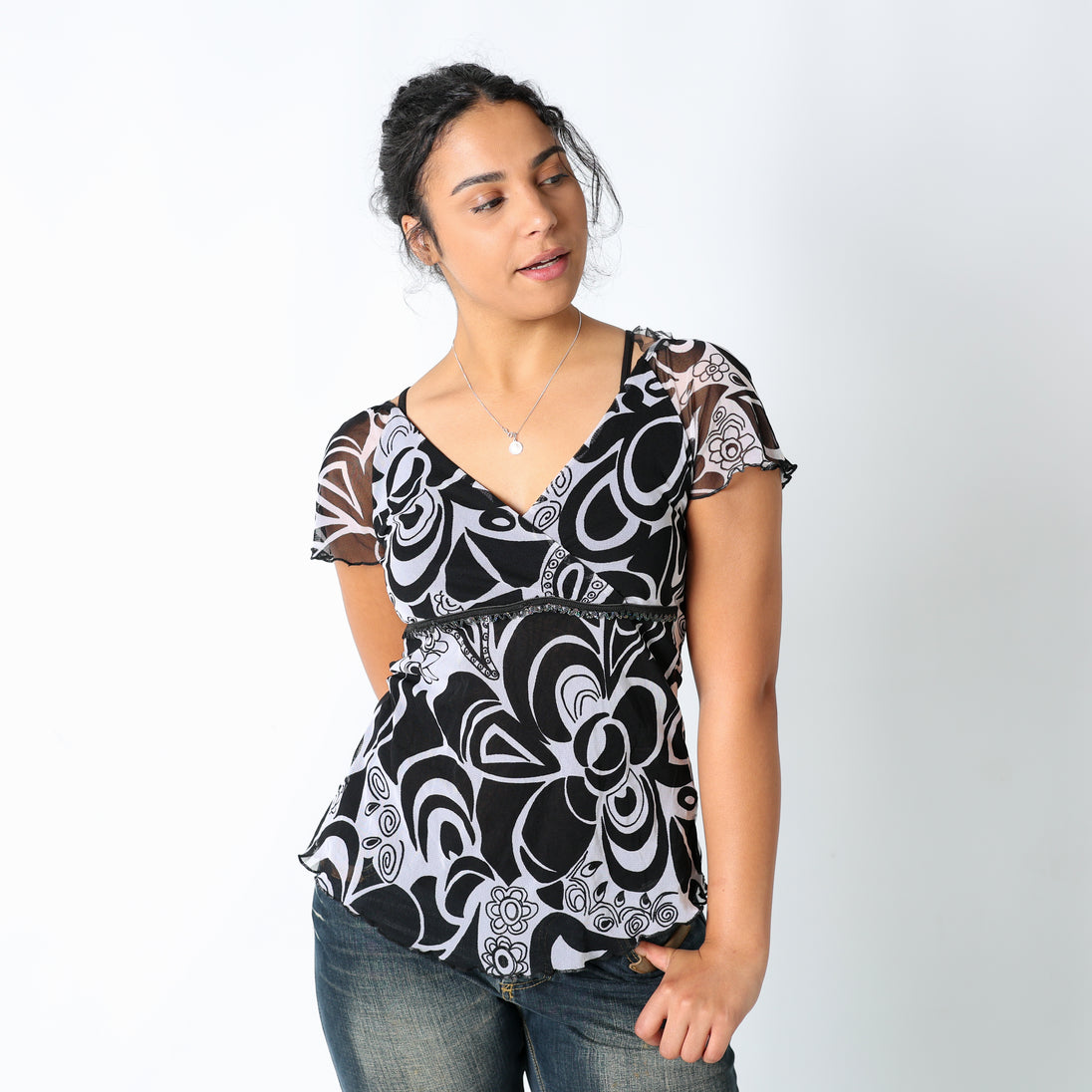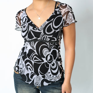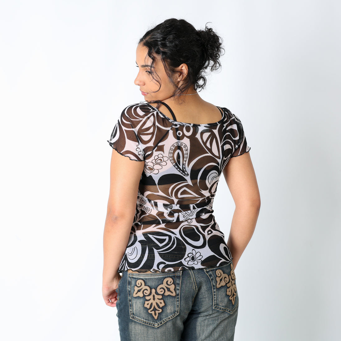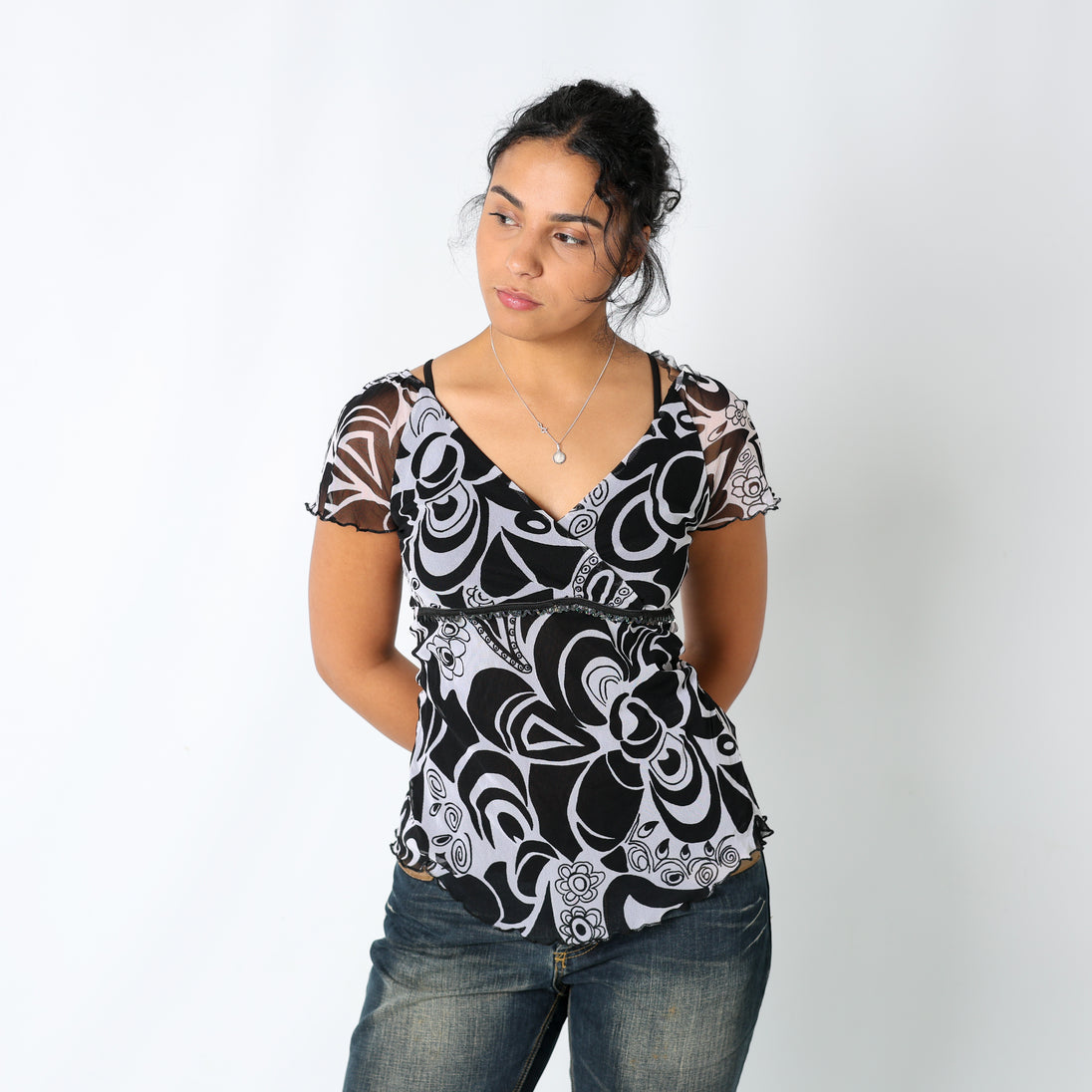 Black 90s Clockhouse Mesh Top Mesh Sparkle Detail (M)