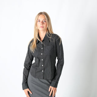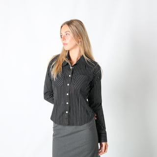 Black 90s Miss Petrolio Shirt Pinstripe (S)