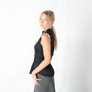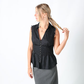 Black 90s Unbranded Blouse Pearl Buttons (M)