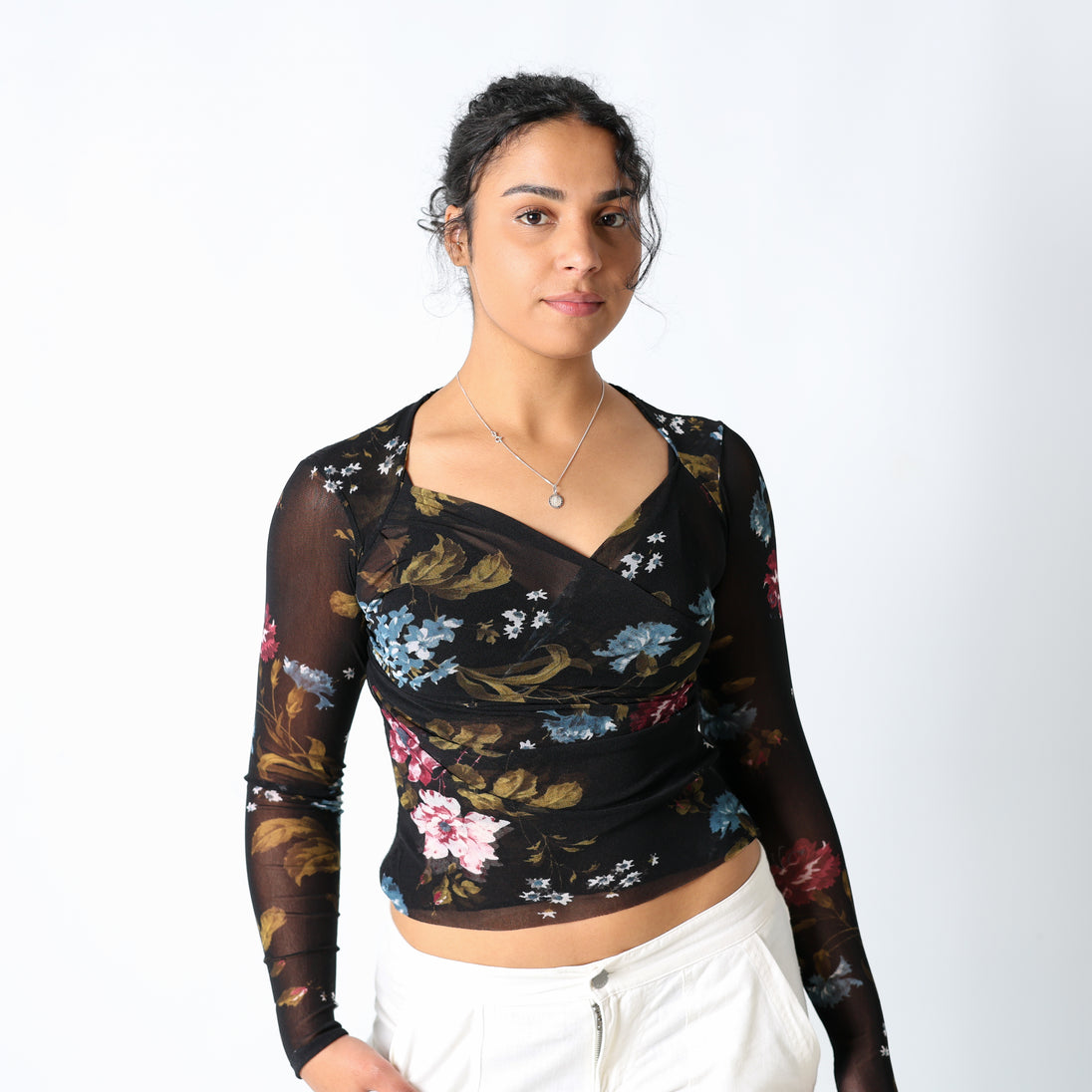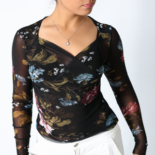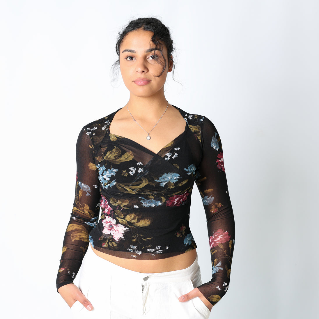 Black 90s Unbranded Cami Floral Ribbed Back (L)