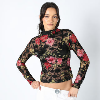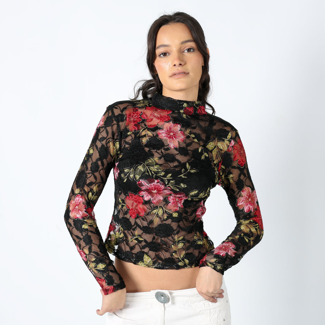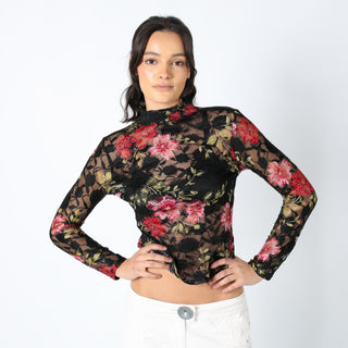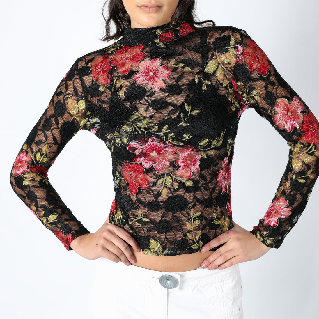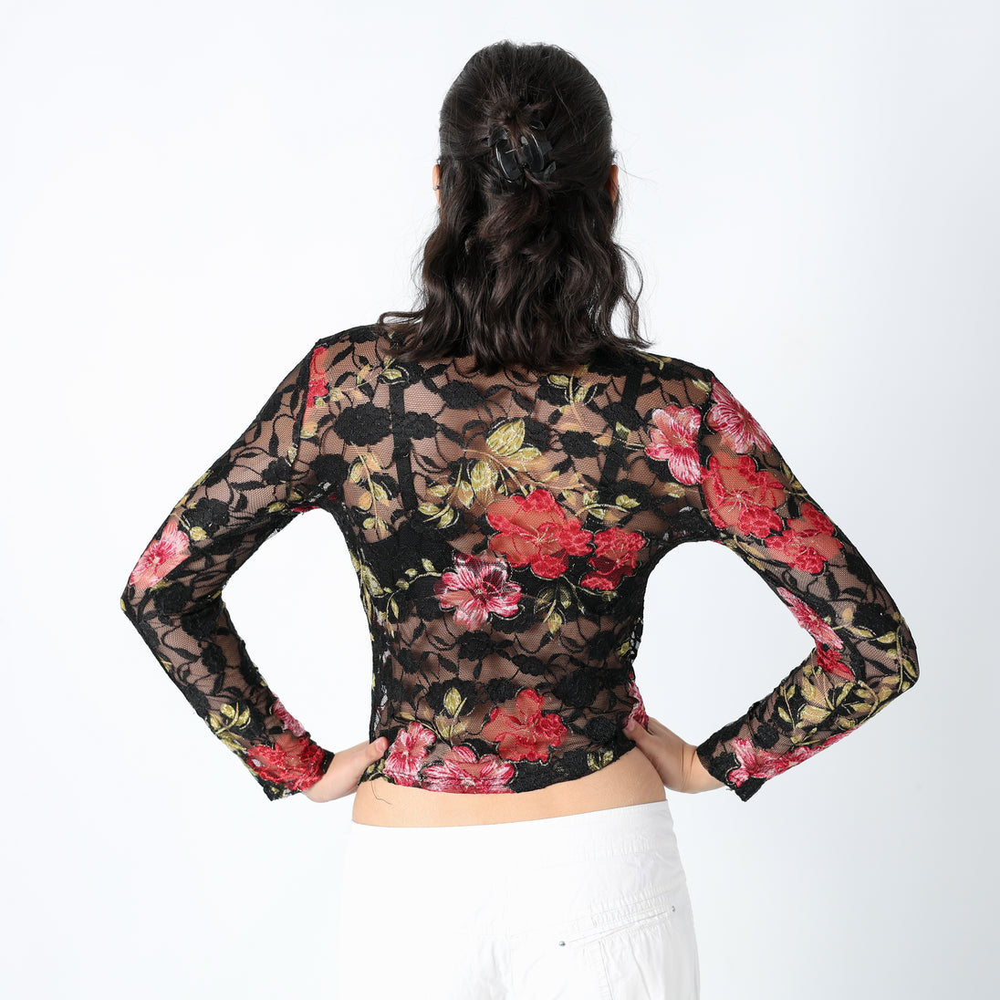 Black 90s Unbranded Mesh Top Sheer Floral Lace (S)