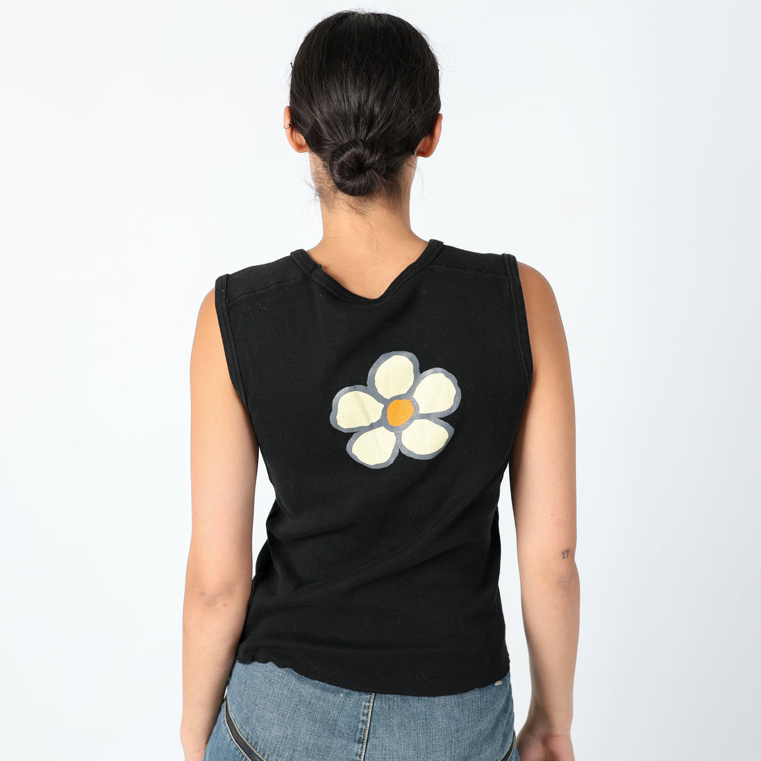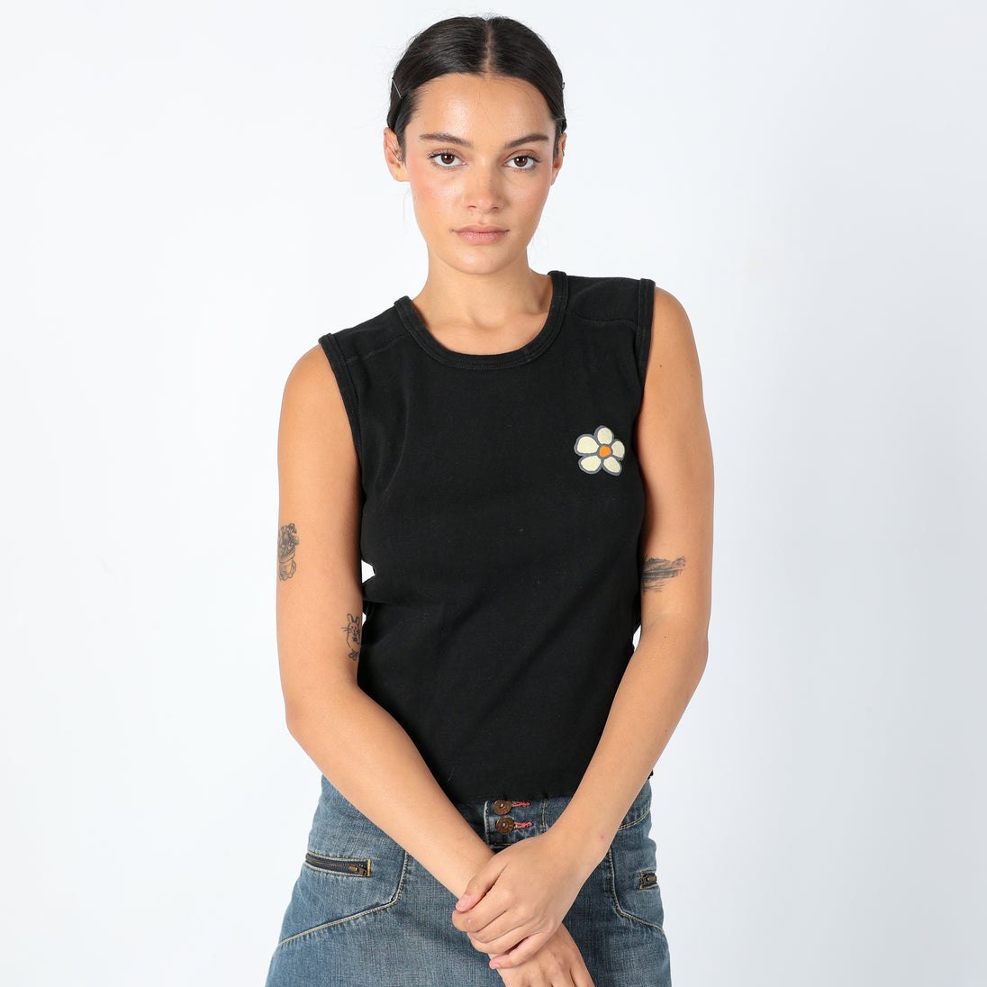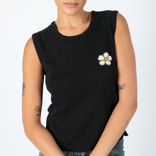 Black 90s Unbranded Woven Top Groovy Chick, Cute Vest Top (M)