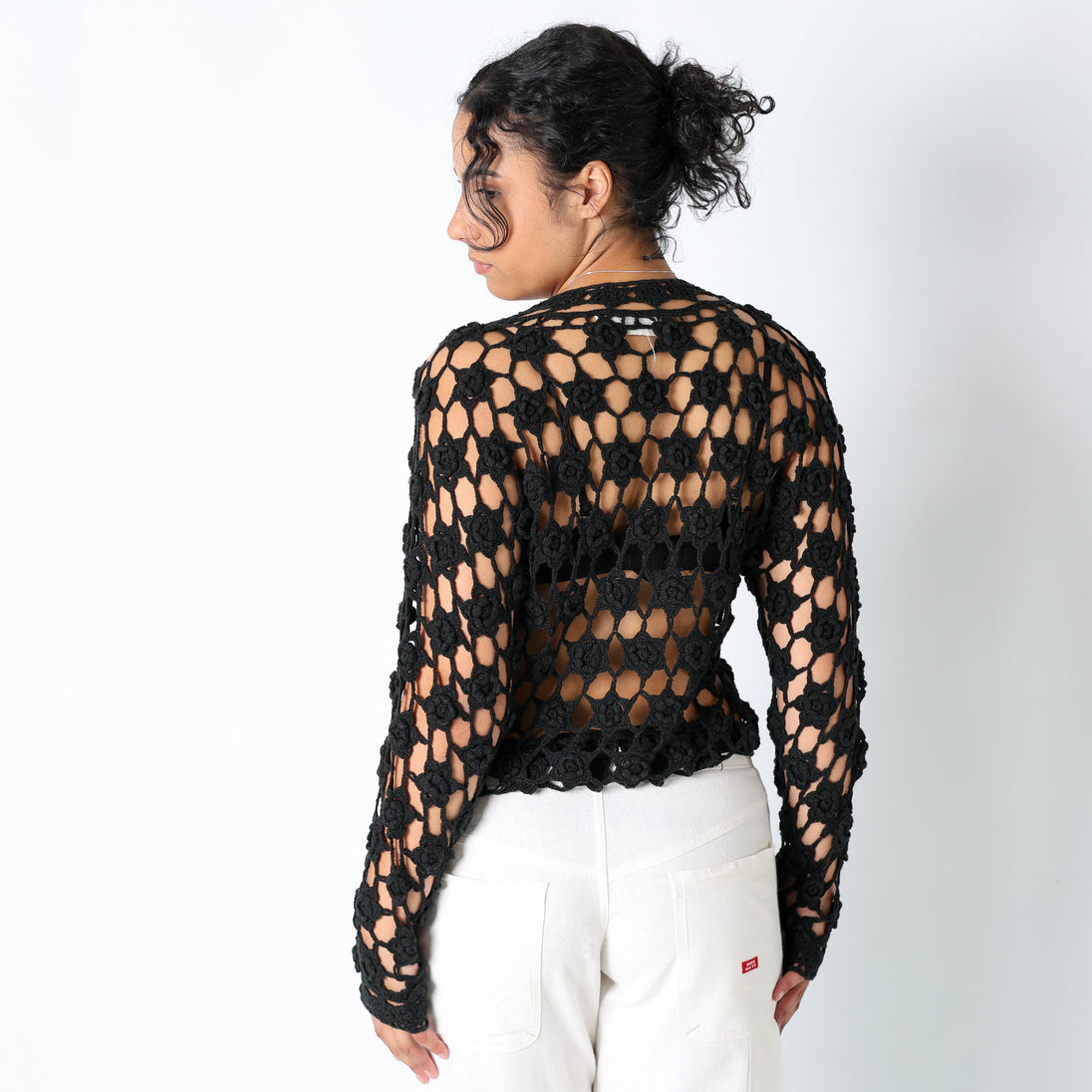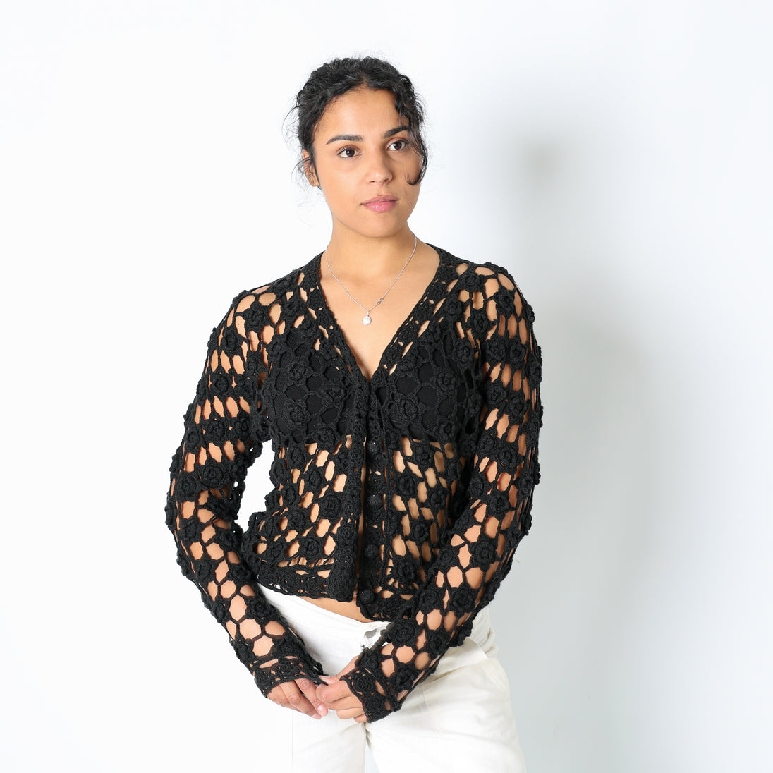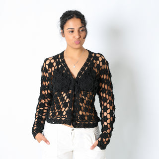 Black y2ks Blue Note Woven Top Crochet Cardigan (L)