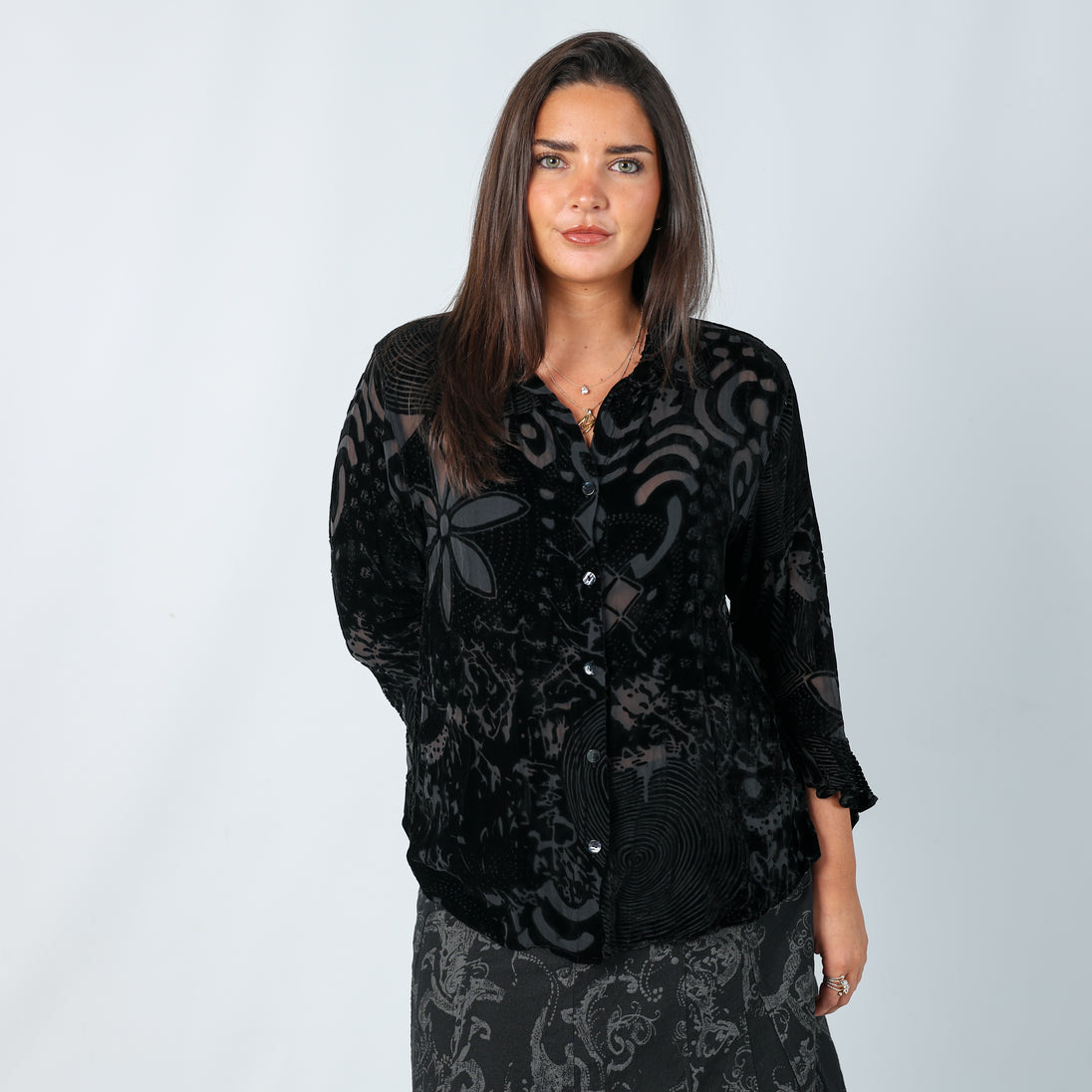 Black y2ks Chico's Blouse Velvet semi sheer (M)
