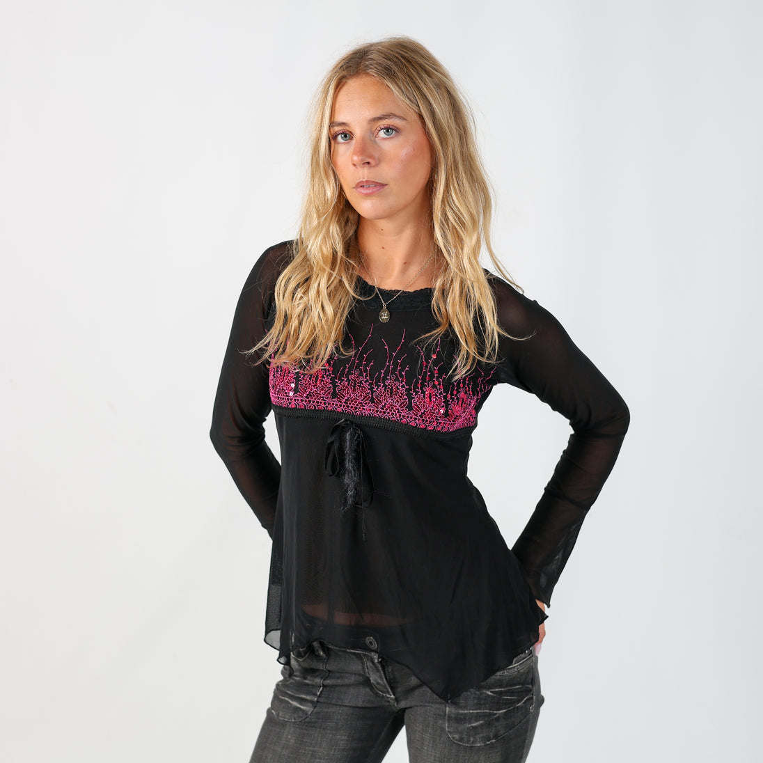 Black y2ks I.C.I.E. Blouse Sheer Sequin (M)