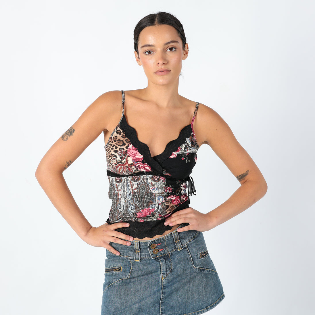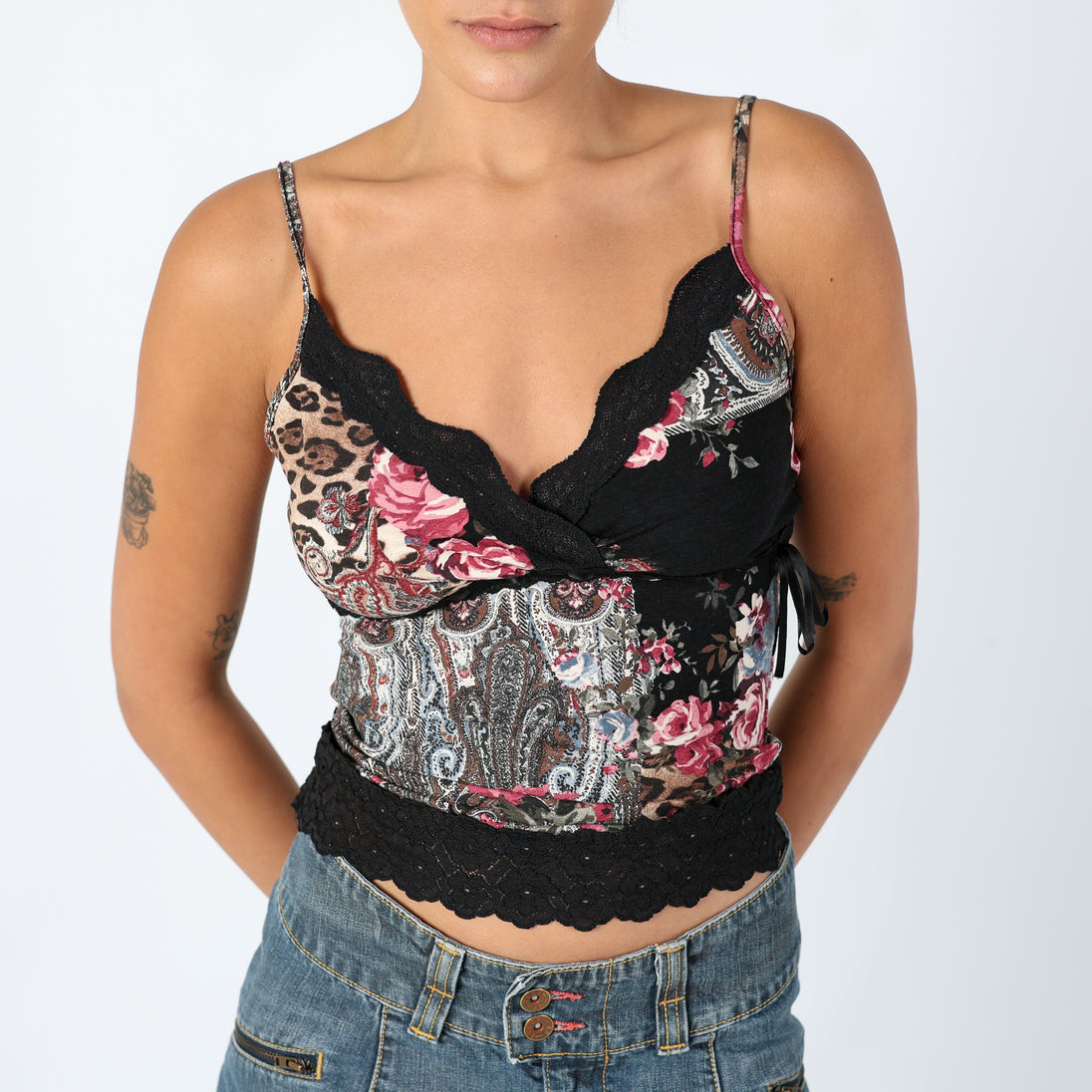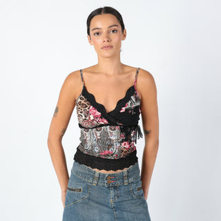 Black y2ks Mitika Cami Y2K Pretty Print Cami, Euro Summer (M)