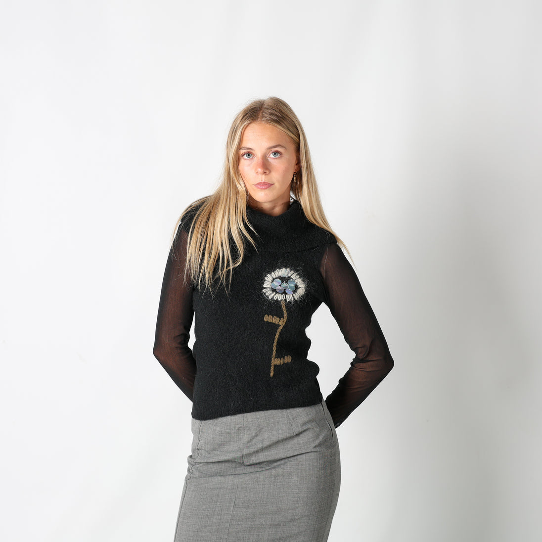 Black y2ks Unbranded Knitted Top Mesh Sleeve Sequin Detail (M)
