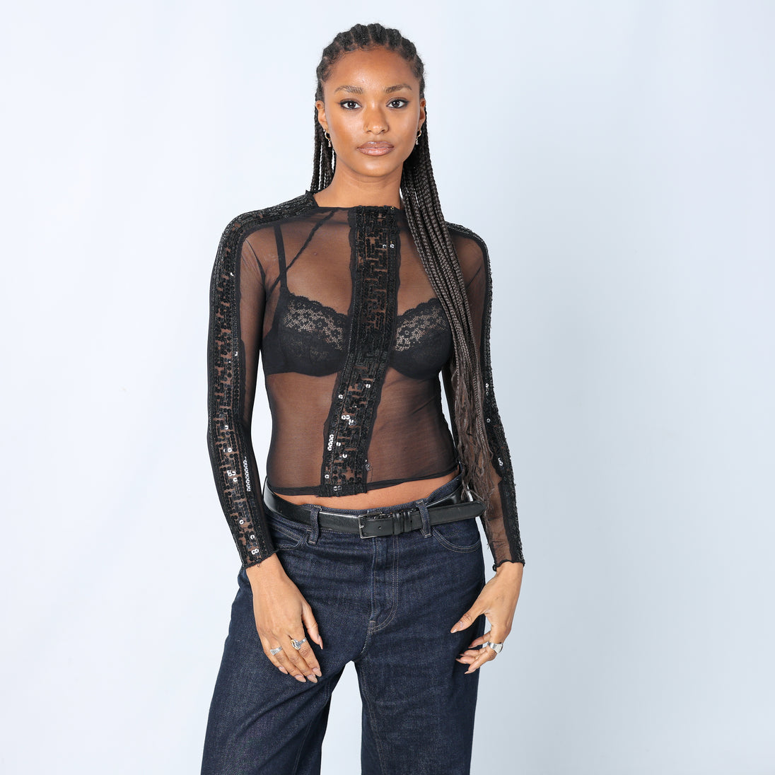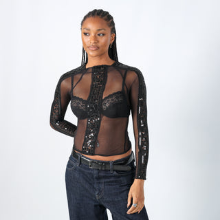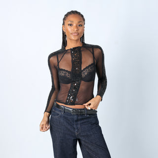 Black y2ks Unbranded Mesh Top Sheer sequin detail (M)