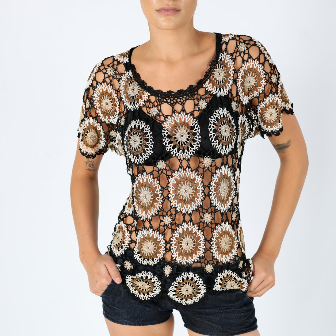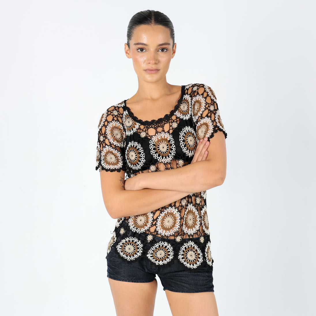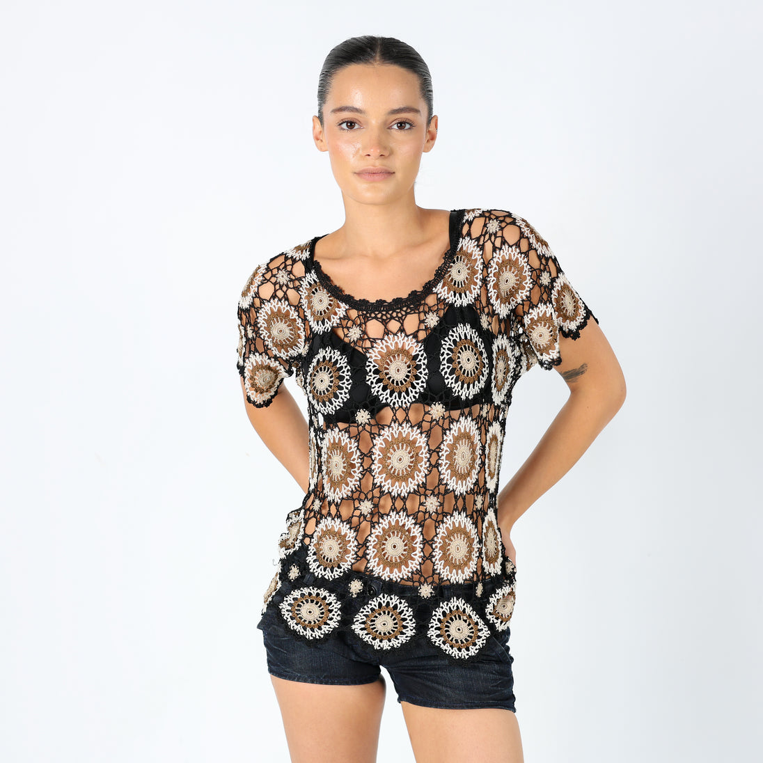 Black y2ks Unbranded Woven Top Crochet Pattern (L)