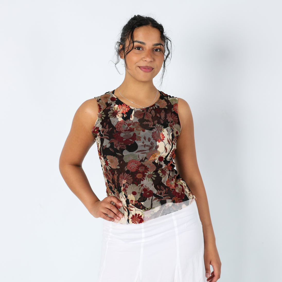 Brown 90s Unbranded Cami Floral Mesh (12)