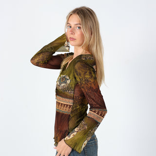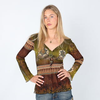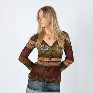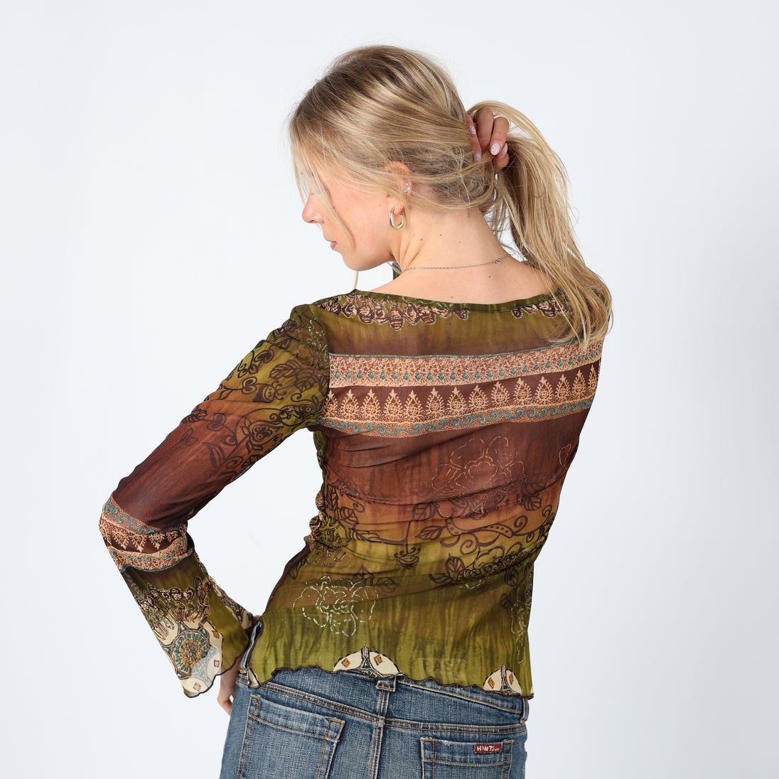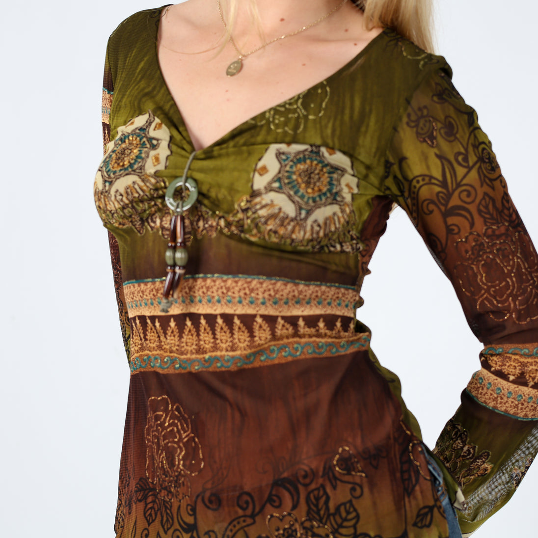 Brown 90s Xanaka Cami Large Bead Detail Sheer Patterned (8)