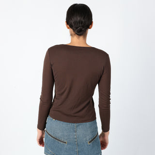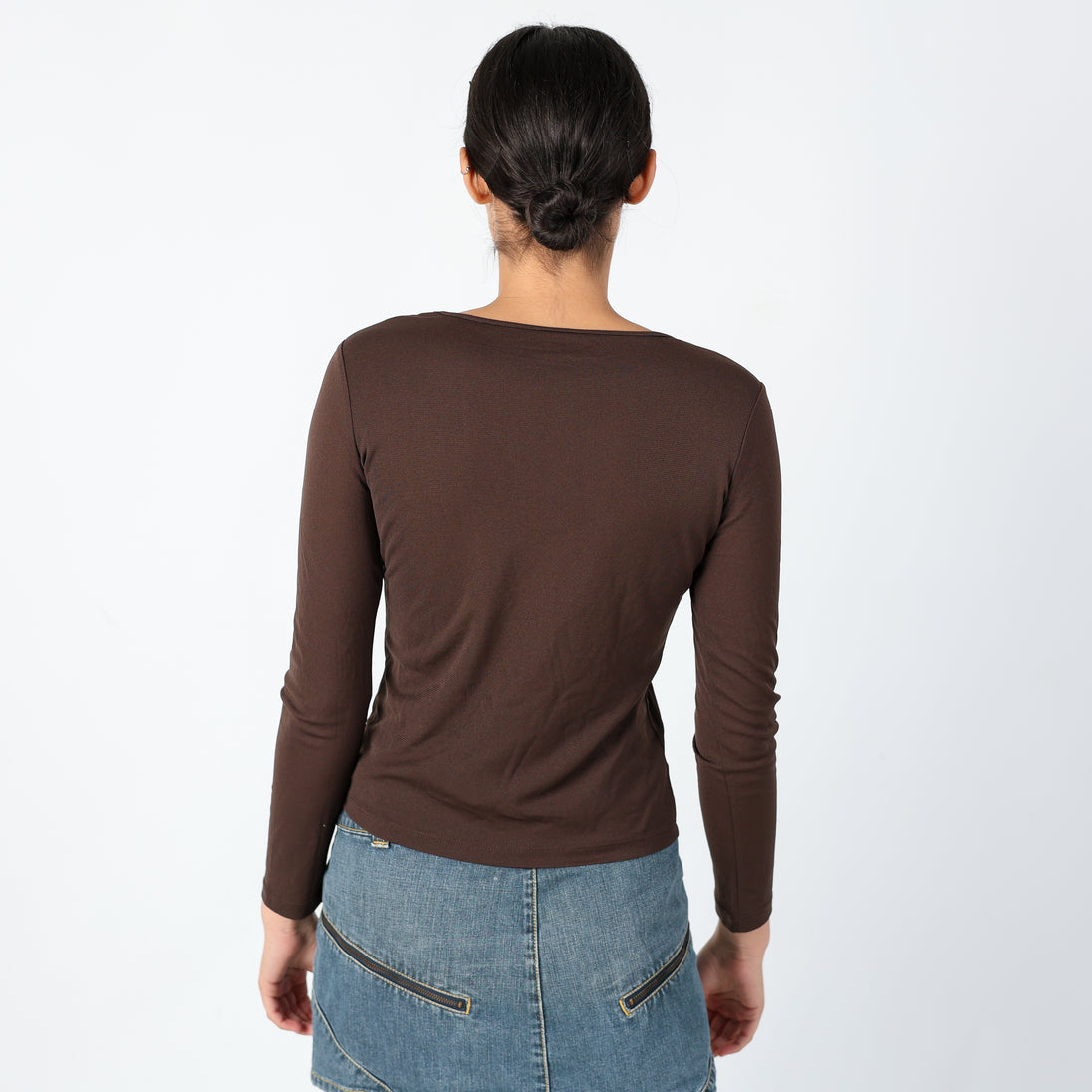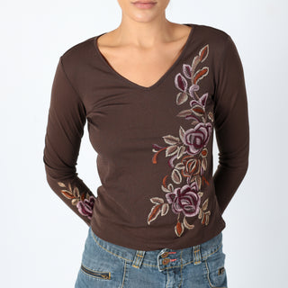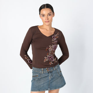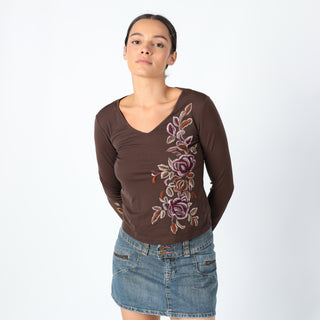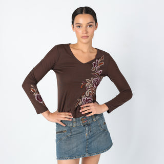 Brown y2ks Apostrophe Woven Top Embroidered Floral print, Cute (S)