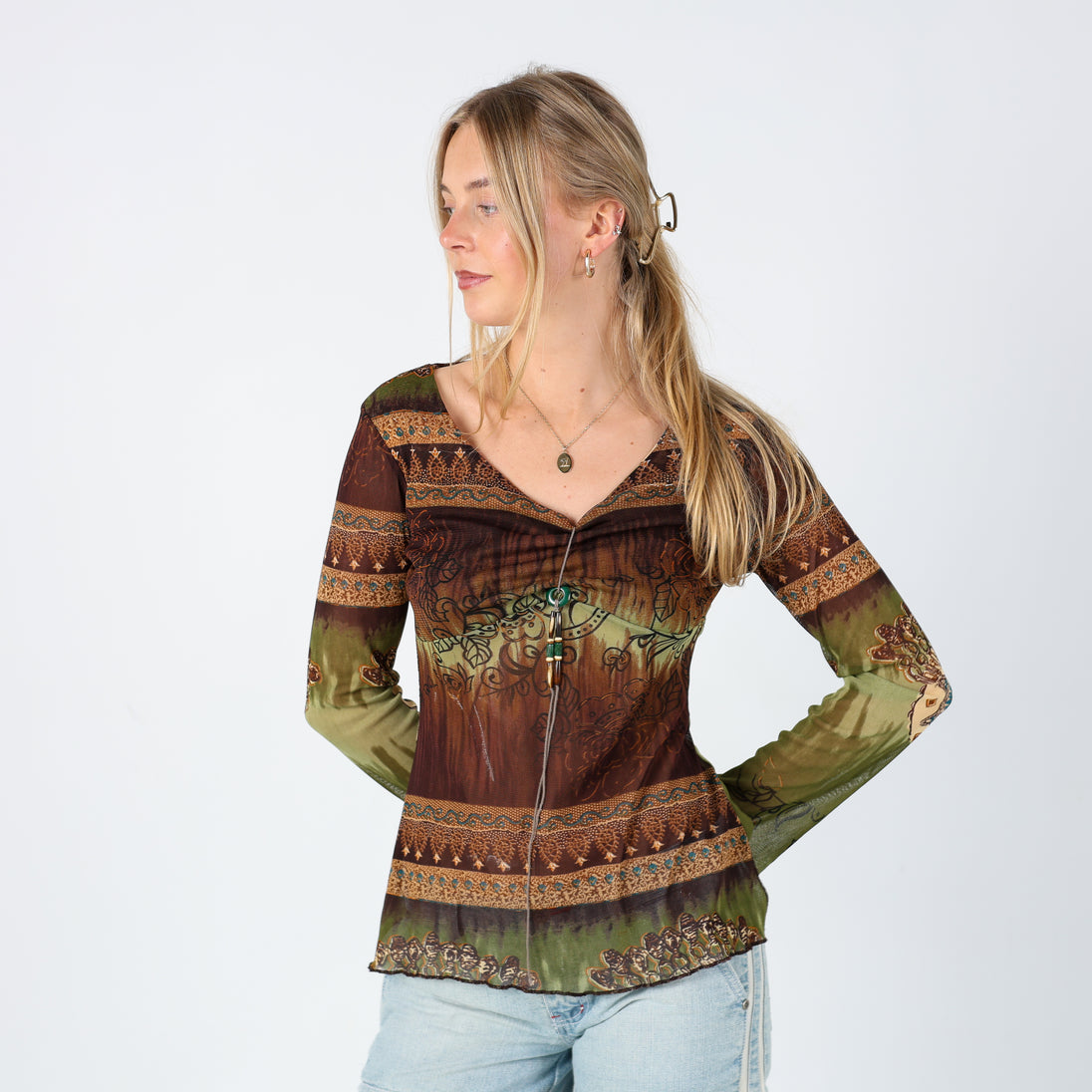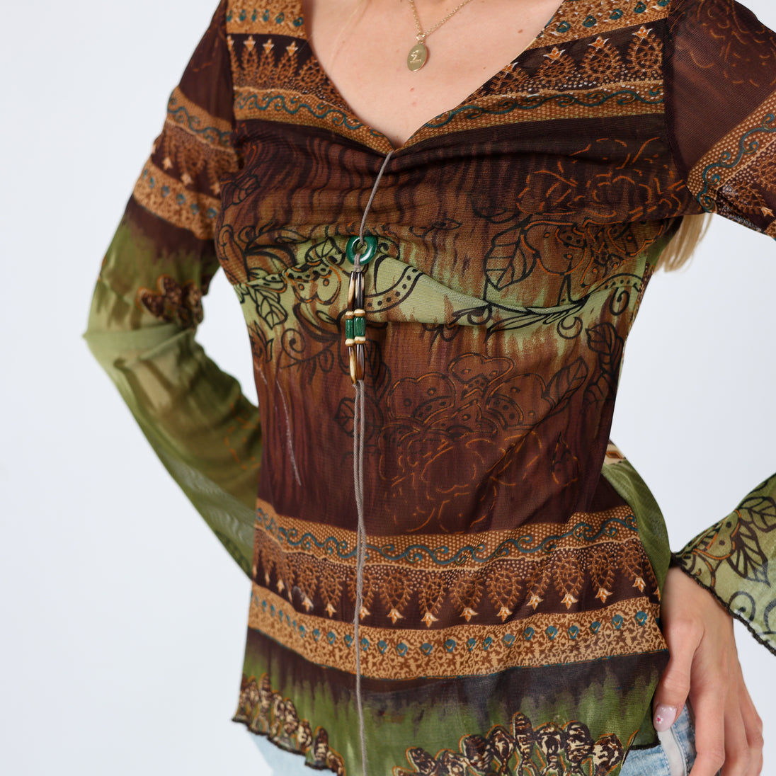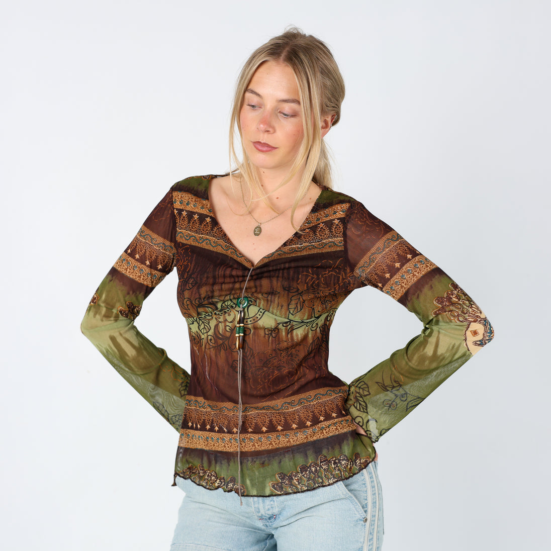 Brown y2ks Unbranded Mesh Top Mesh Bead Detail Patterned (12)