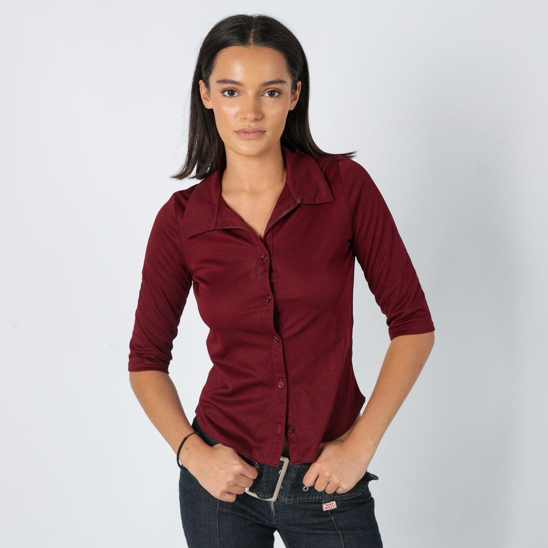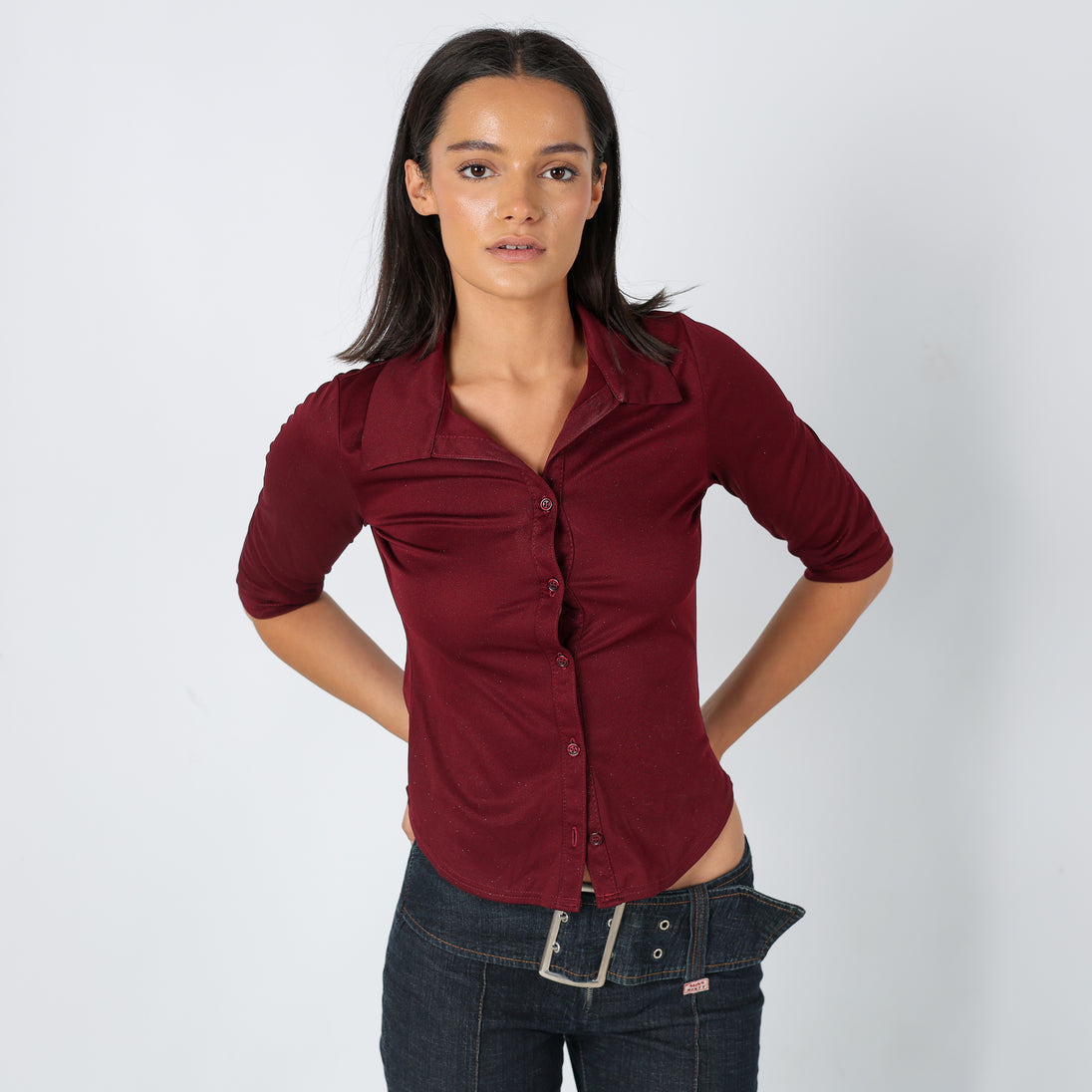 Burgundy Red 90s Pimkie Blouse Shimmer (S)