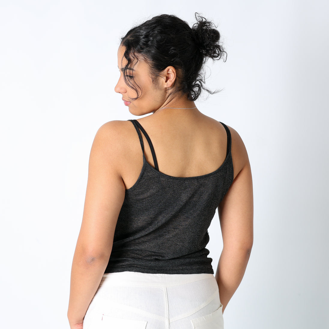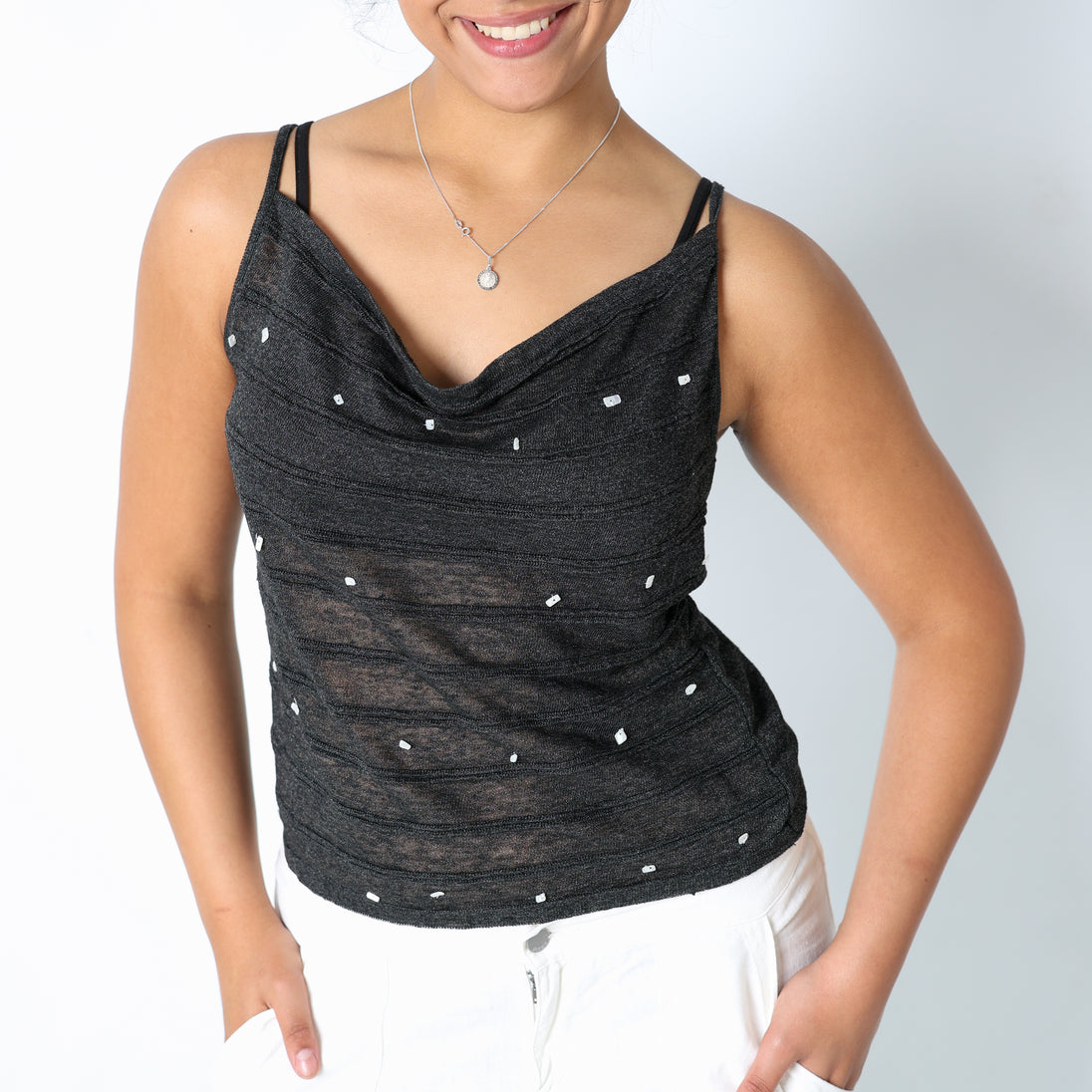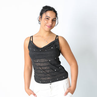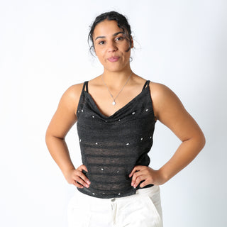 Charcoal Grey 90s C'est Petit Cami Sheer Sparkle Bead Detail (M)