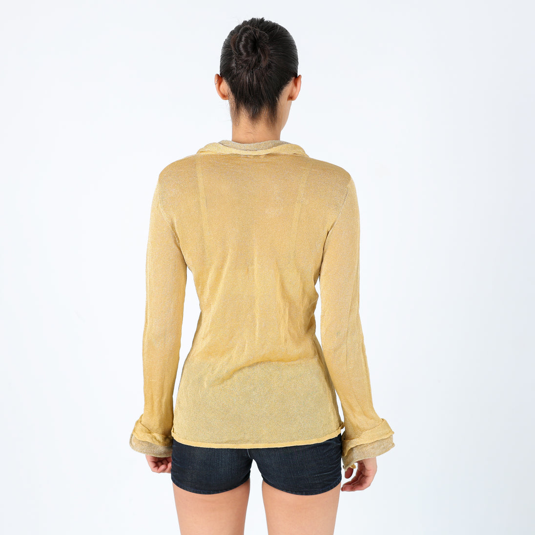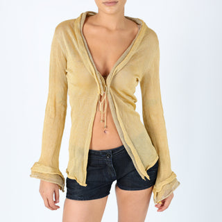 Gold y2ks Roberto Cavalli Mesh Top Chic Front Tie (S)