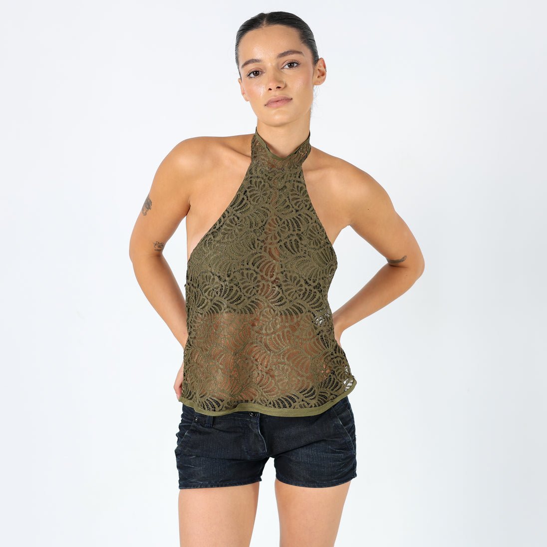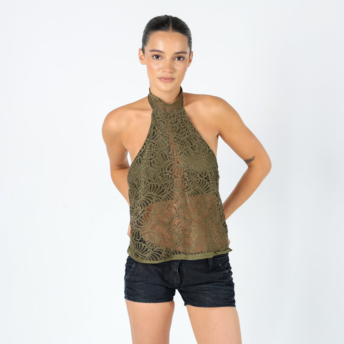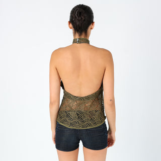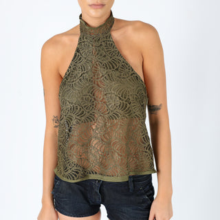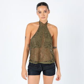 Khaki Green y2ks Agatha Cami Lace Halter Neck (10)