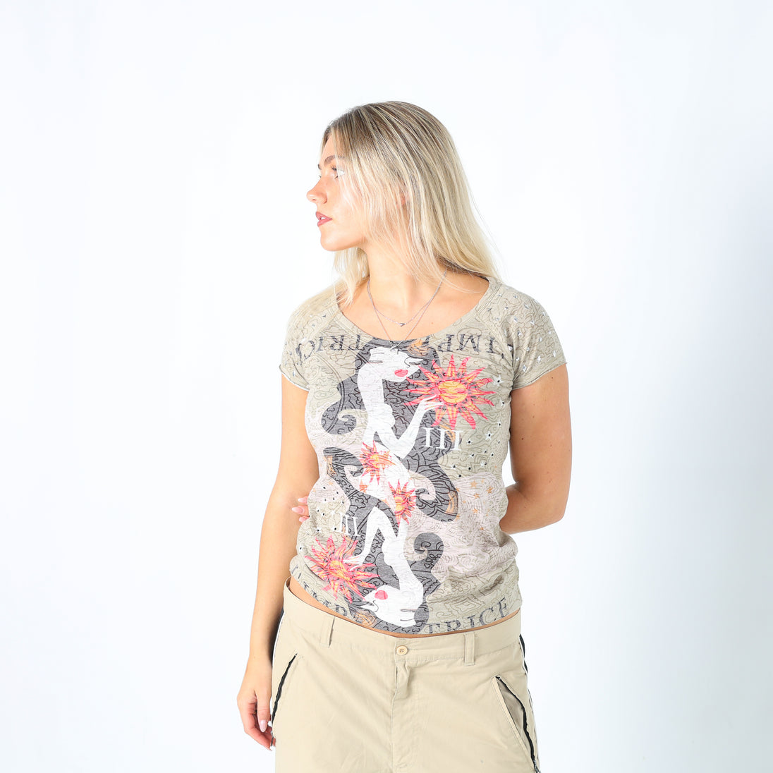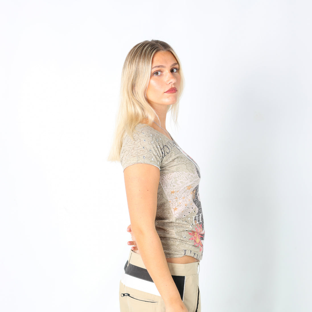 Khaki Green y2ks Custo Barcelona T-shirt Studded (M)