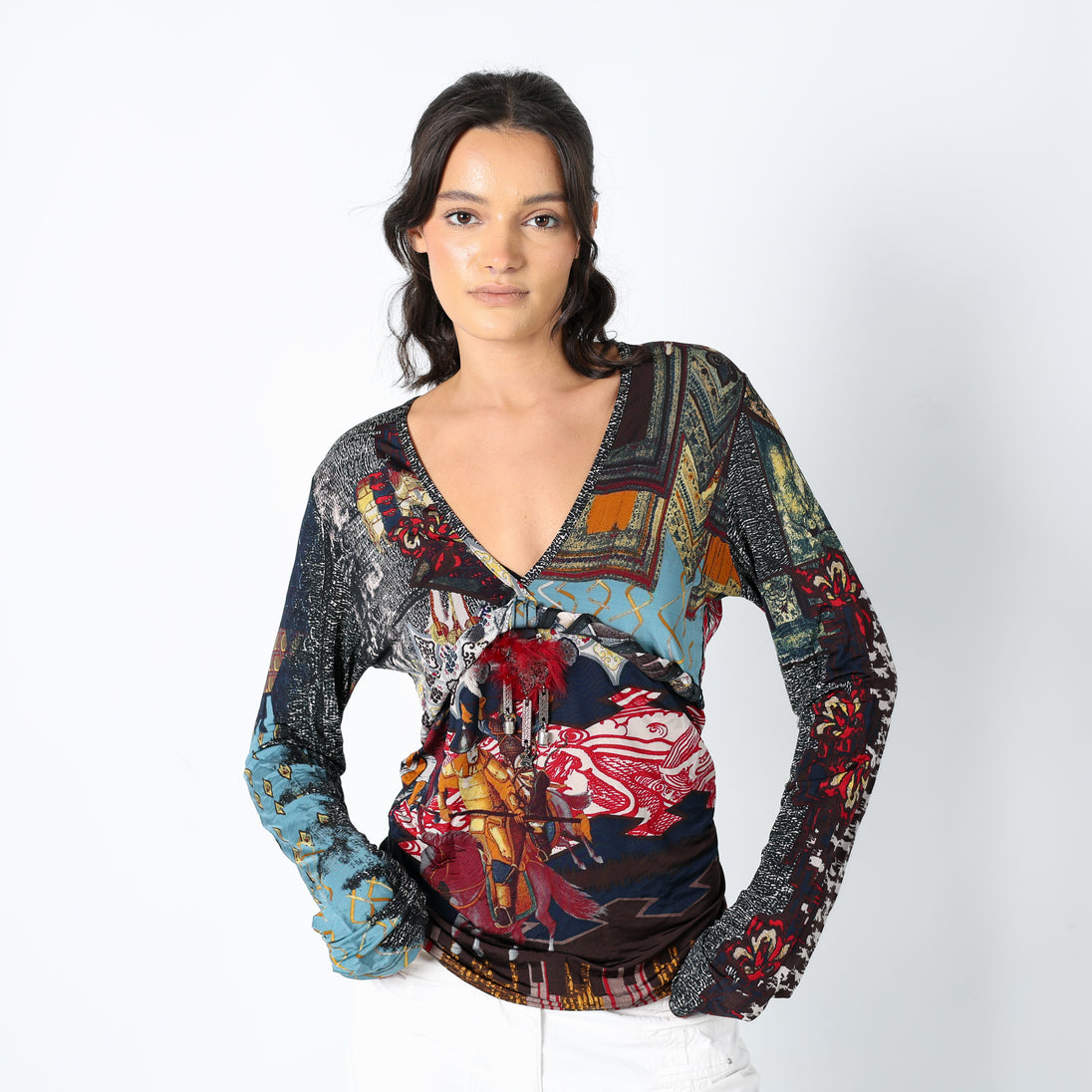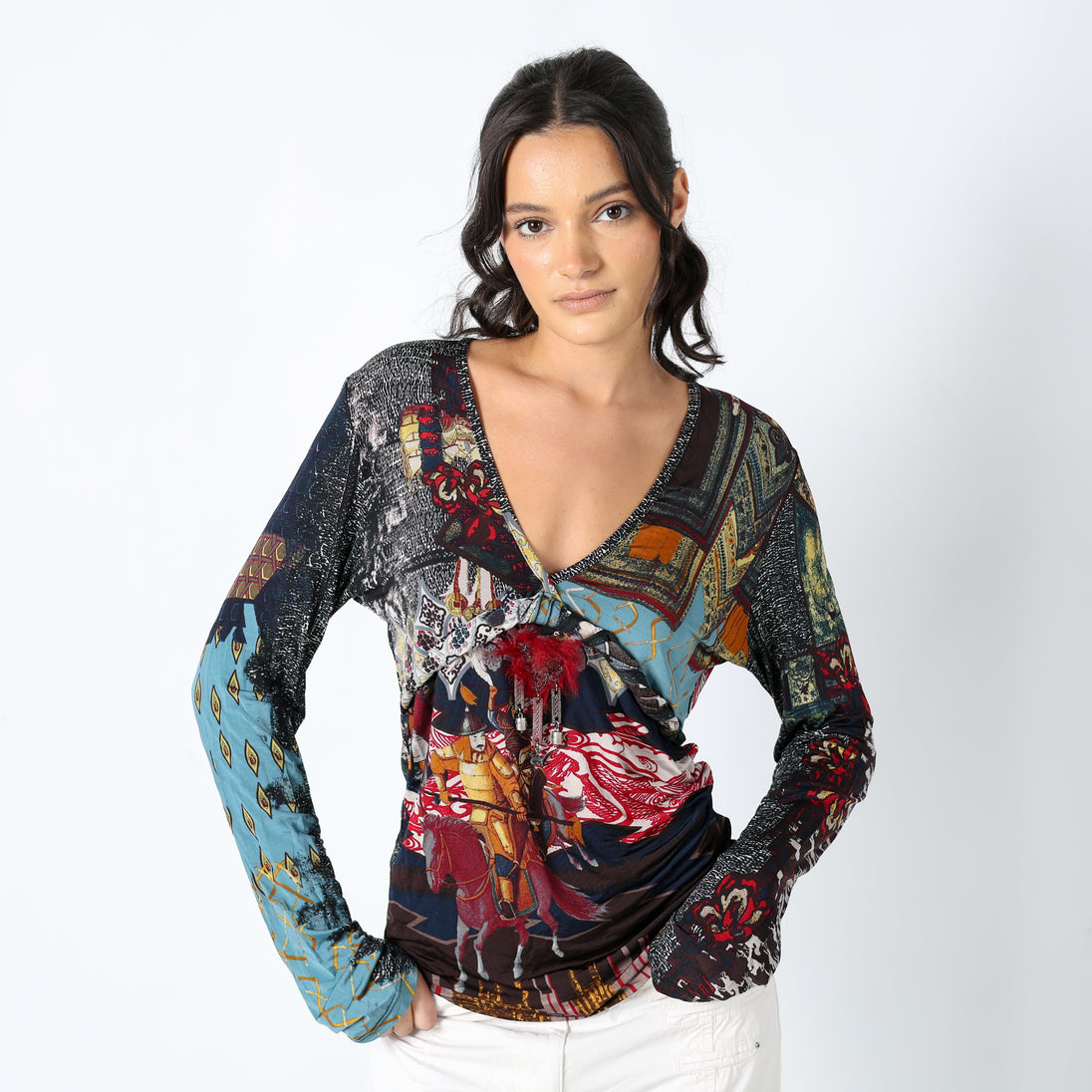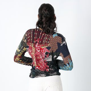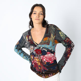Multi Colured 90s Save The Queen Cami Print Feather Detail (L)