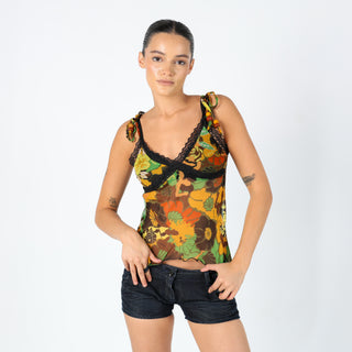 Multi Colured 90s Unbranded Cami Sheer Patterned Lace Detail (10)