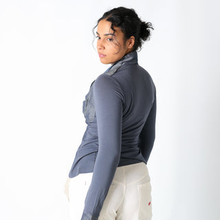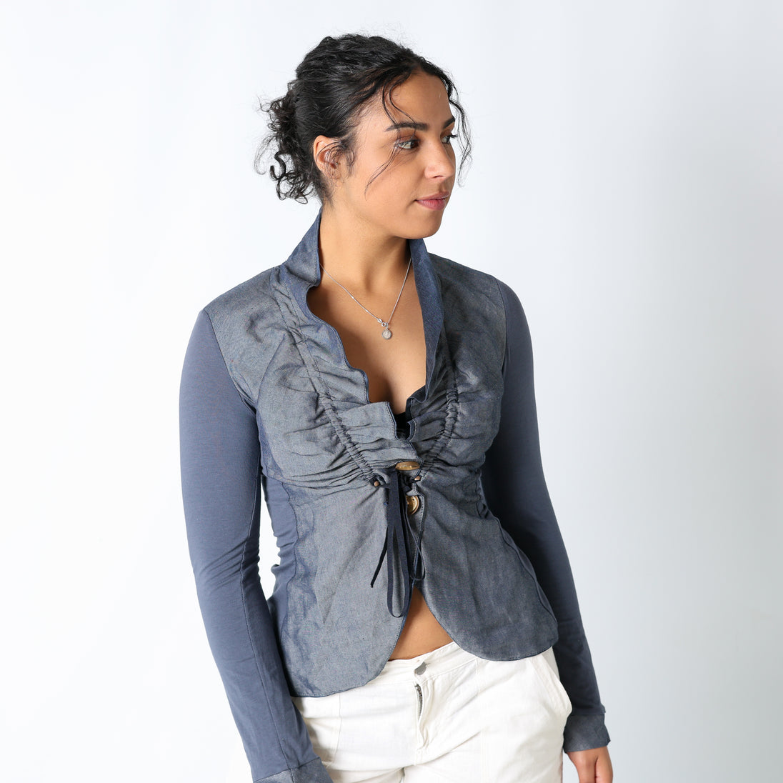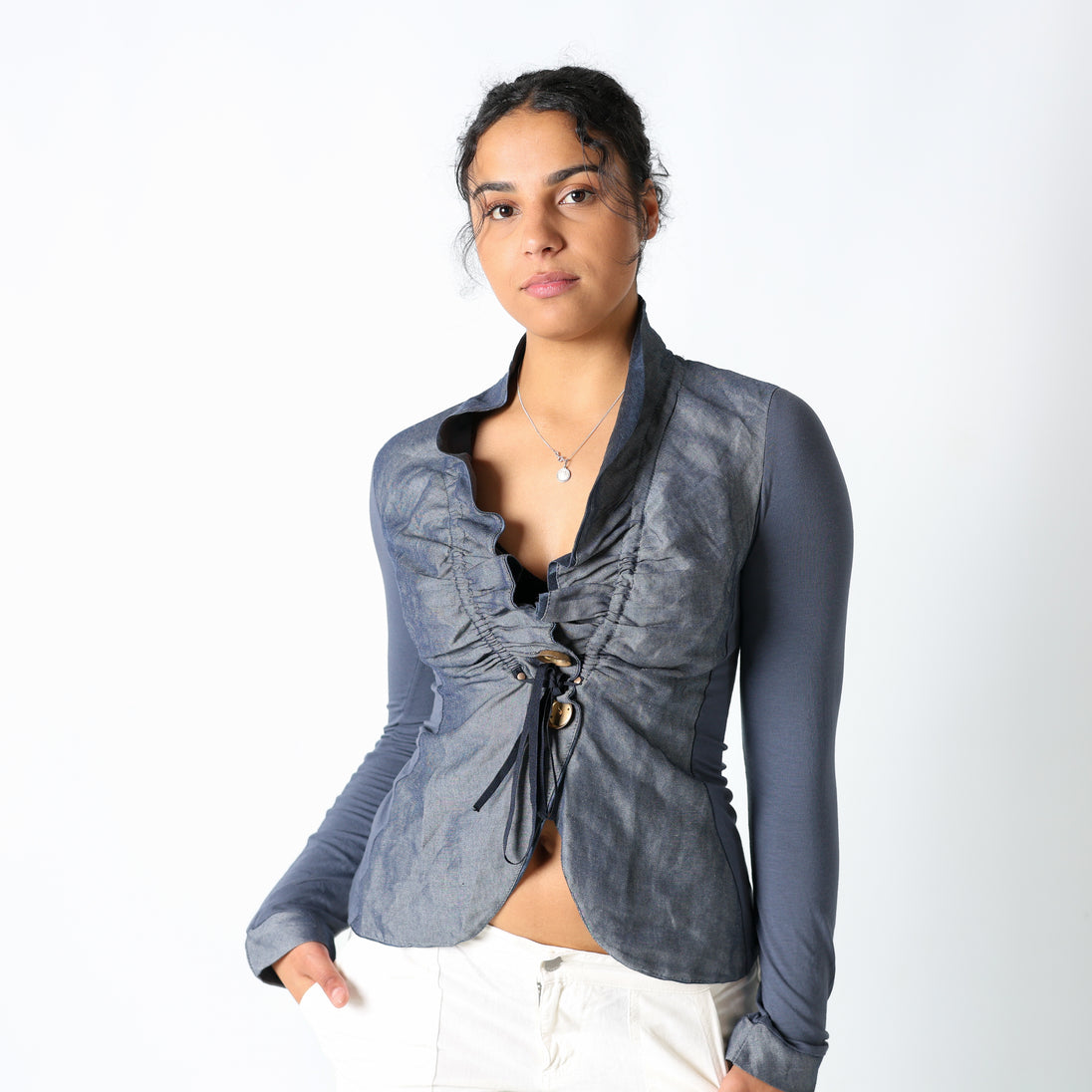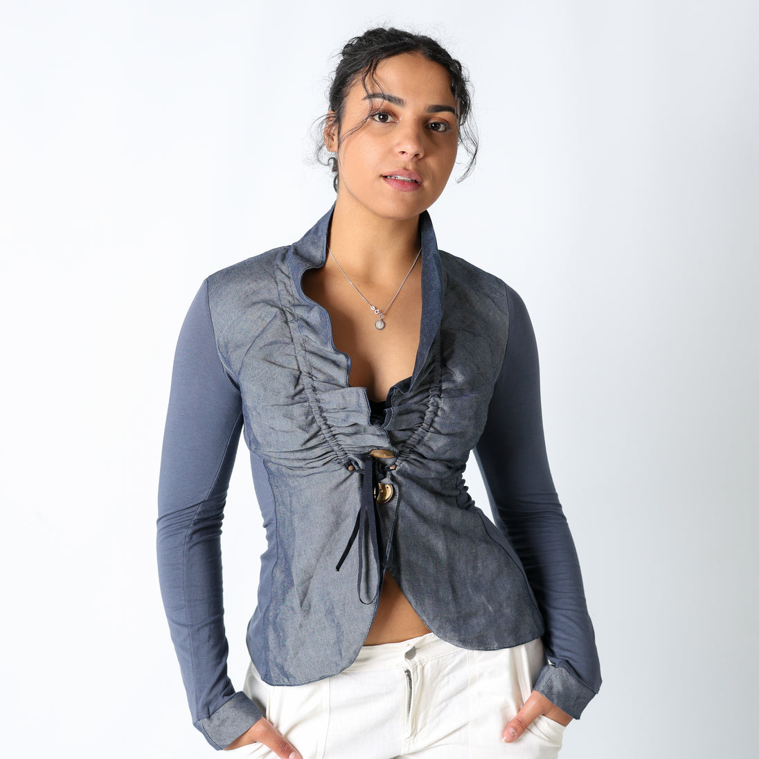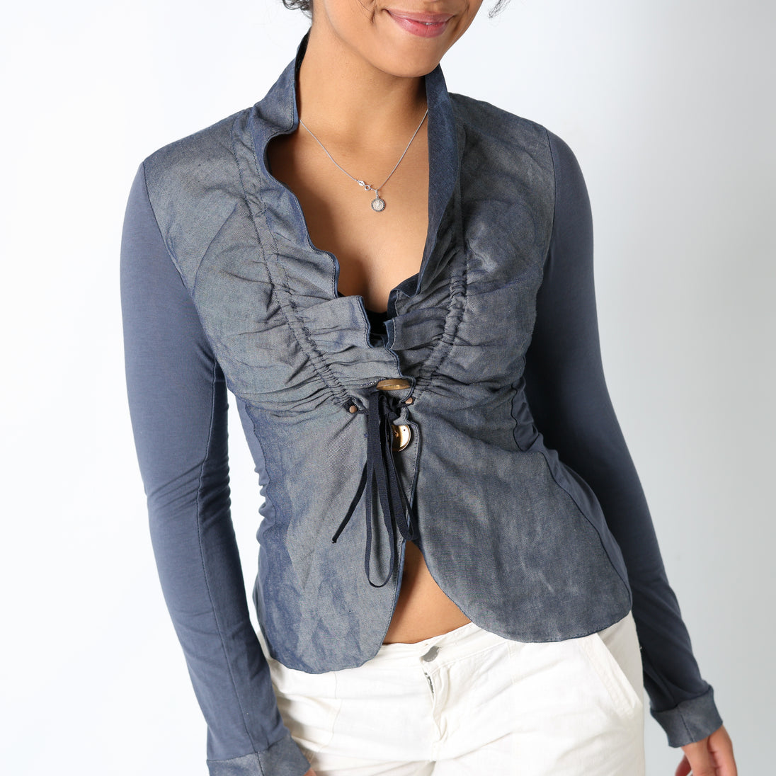 Navy Blue 90s Telco Shirt Unique Statement Large Gold Buttons (M)