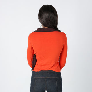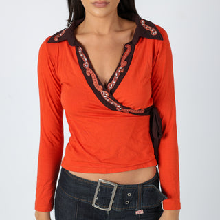Orange 90s Donatella Blouse Low-Cut Embroidered (M)