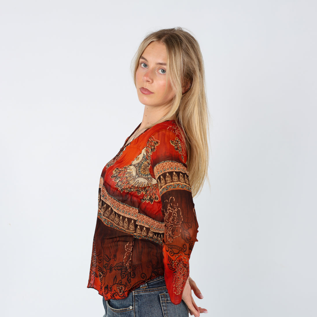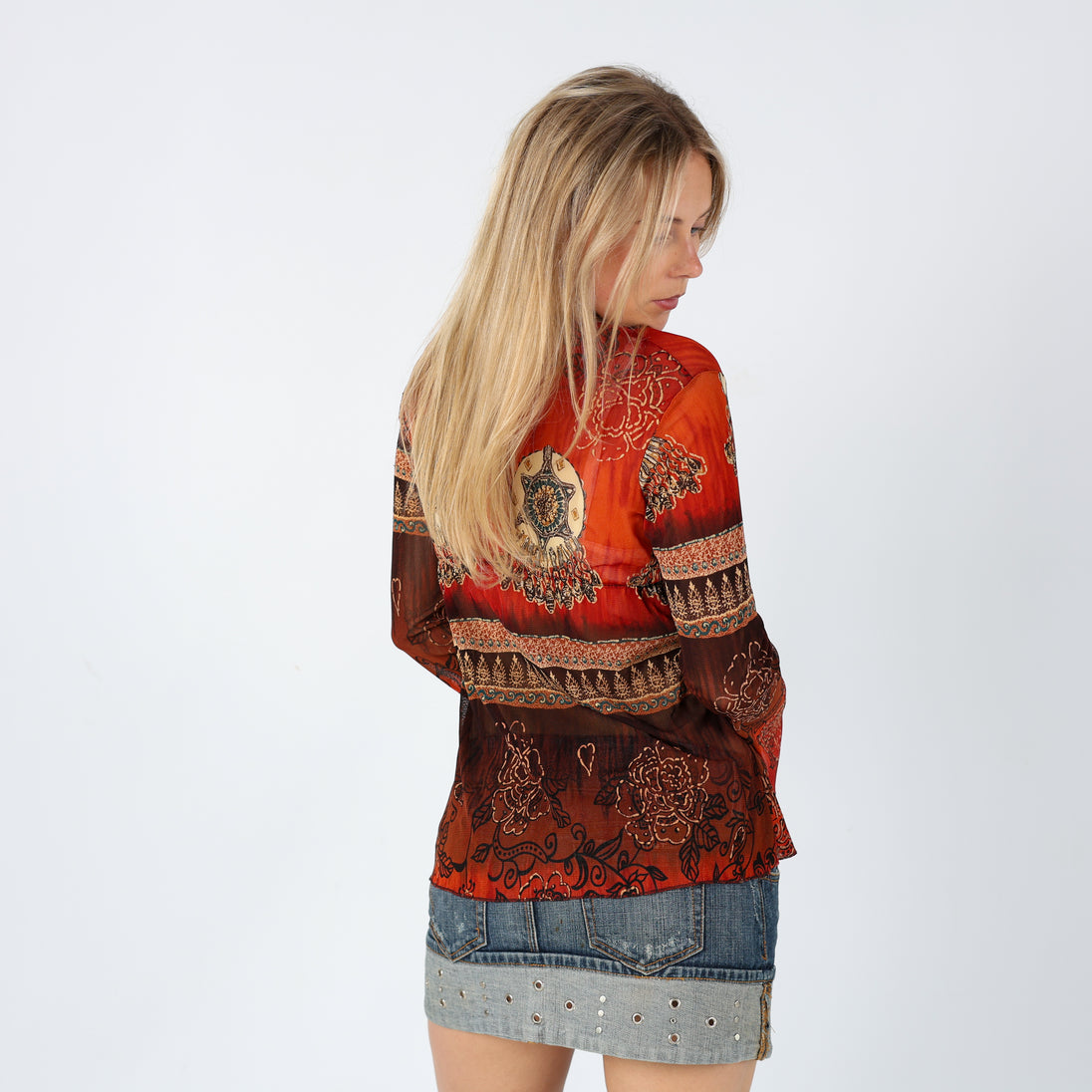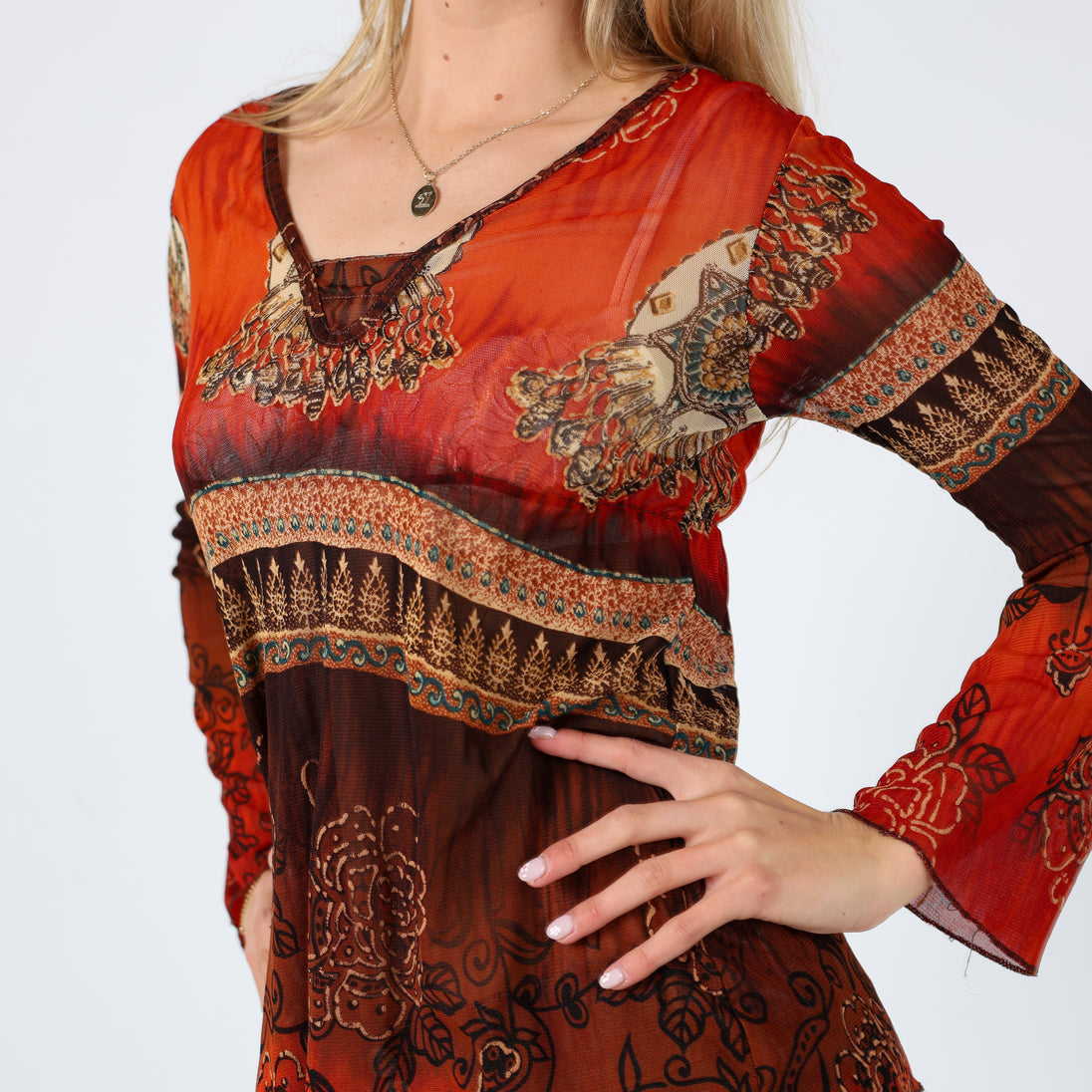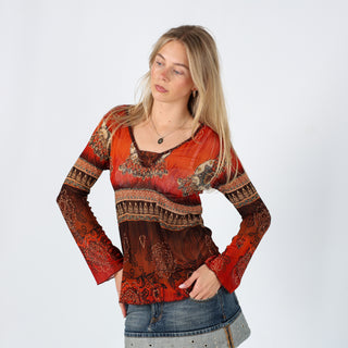 Orange y2ks Amisu Mesh Top Sheer Patterned (S)