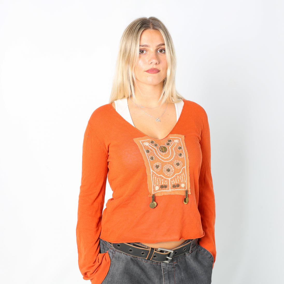 Orange y2ks Stefanel Knitted Top Beaded Detail (M)