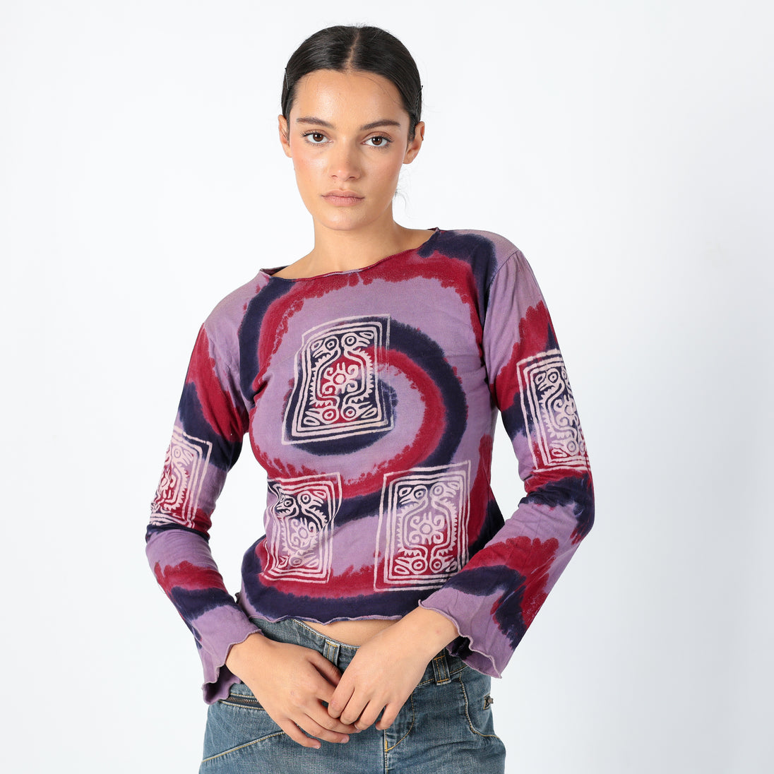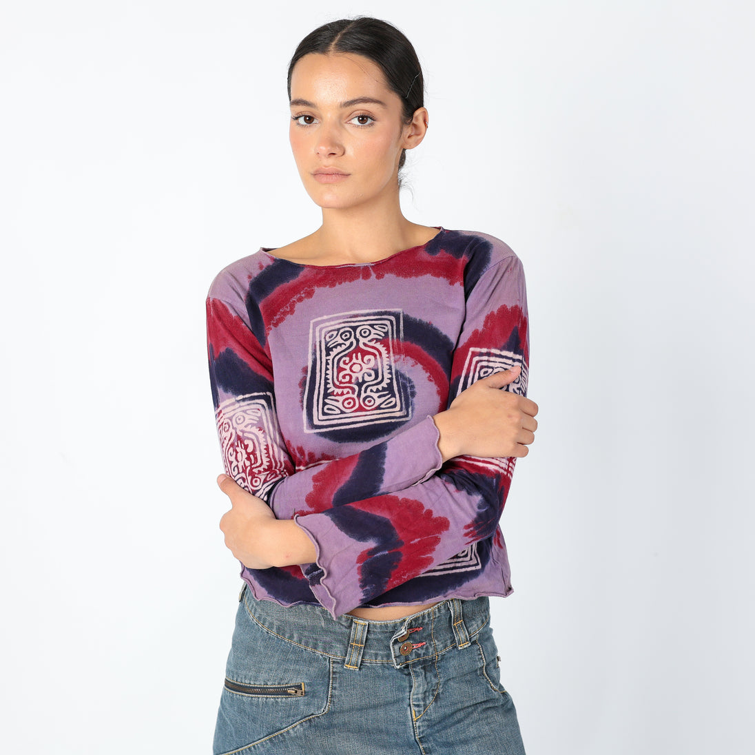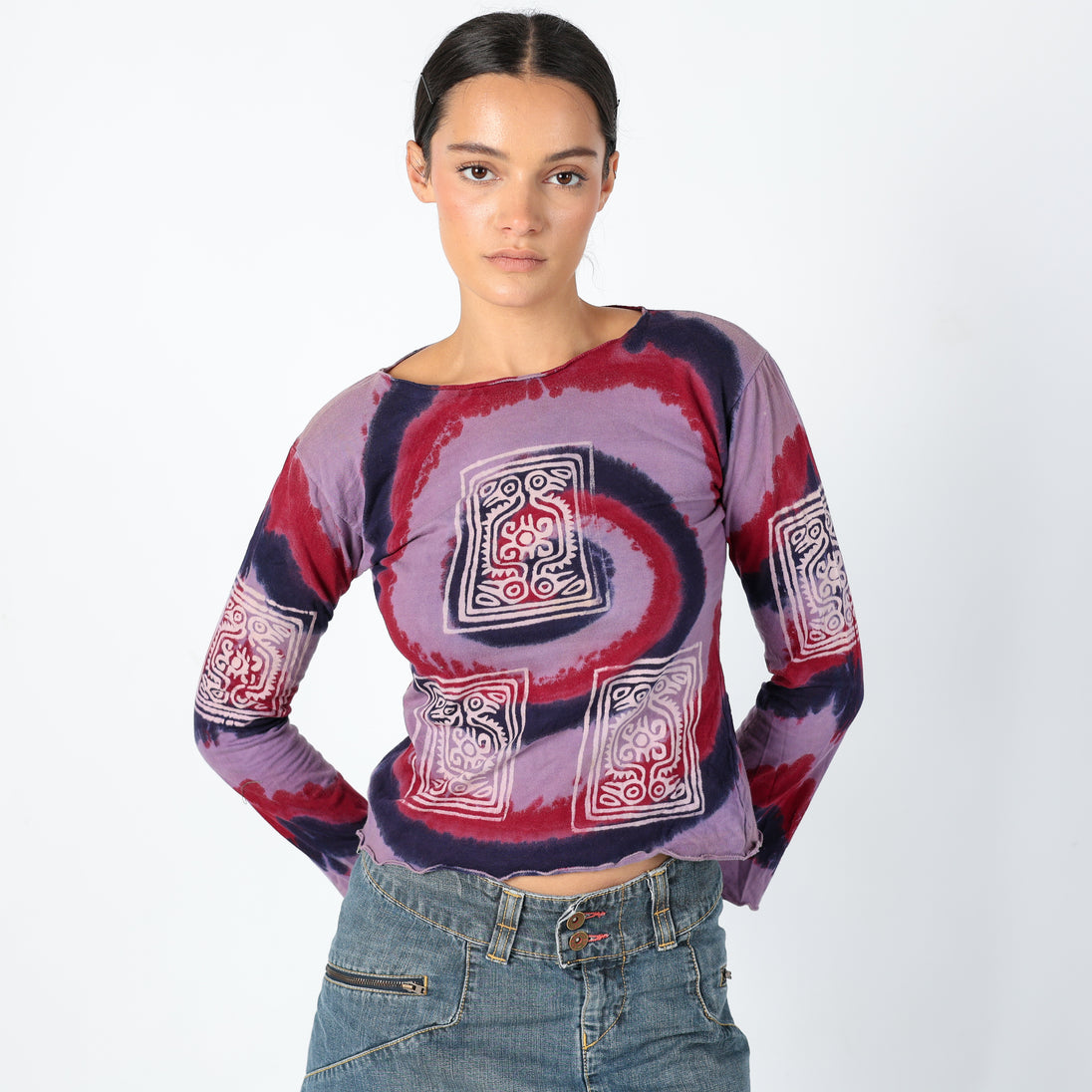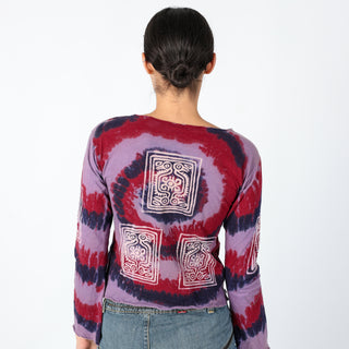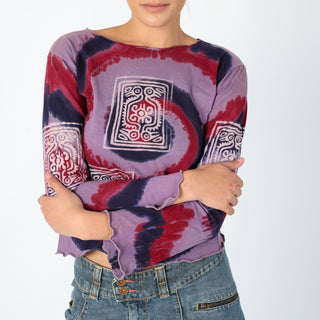 Purple 90s Legend Woven Top Fairy-Core, Festival, Printed (M)