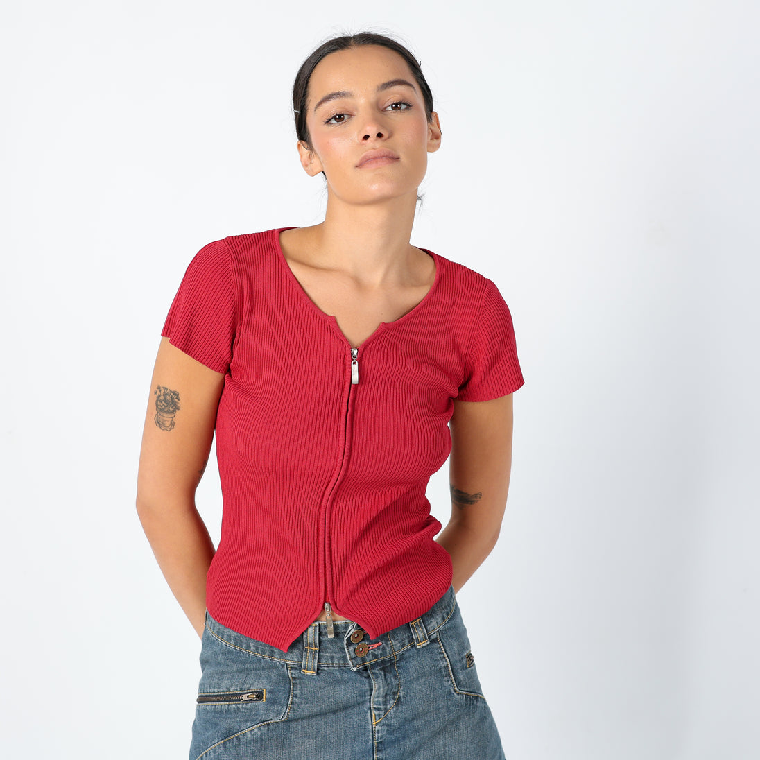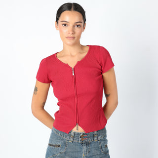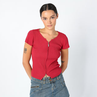 Red 90s Unbranded Woven Top 90s Casual Date Night (M)