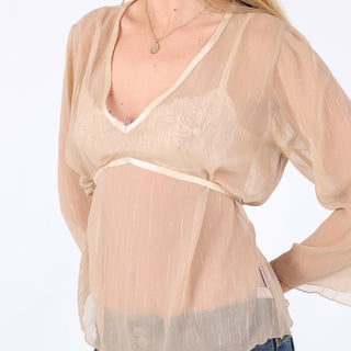 Tan 90s Daddy&Son Cami Sheer Gold Pinstripe (L)
