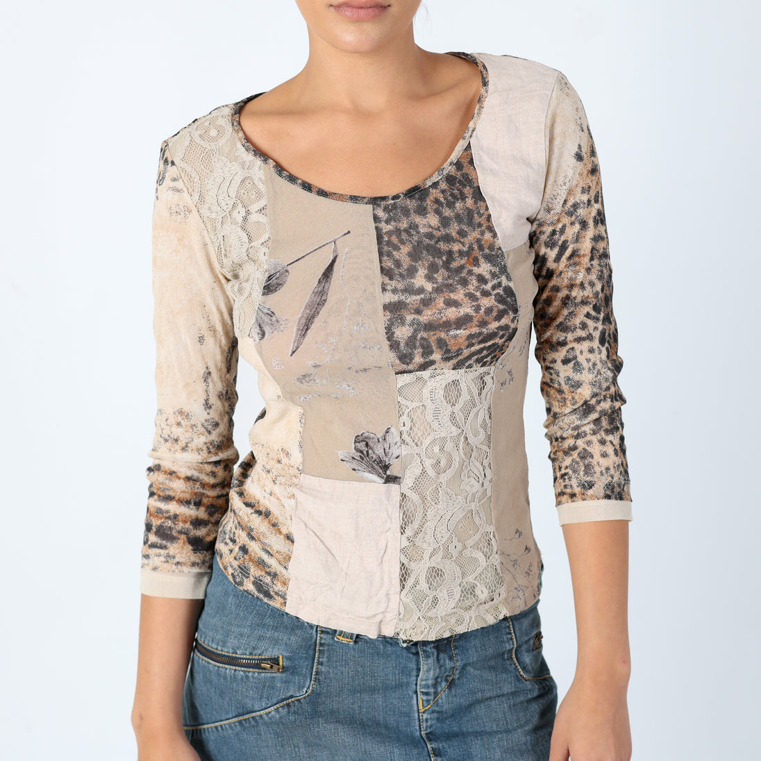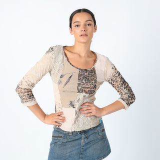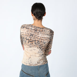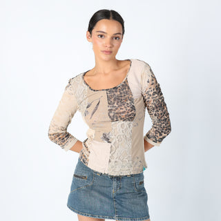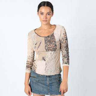 Tan 90s niceconnection Mesh Top Euro Summer, Chic Print (M)