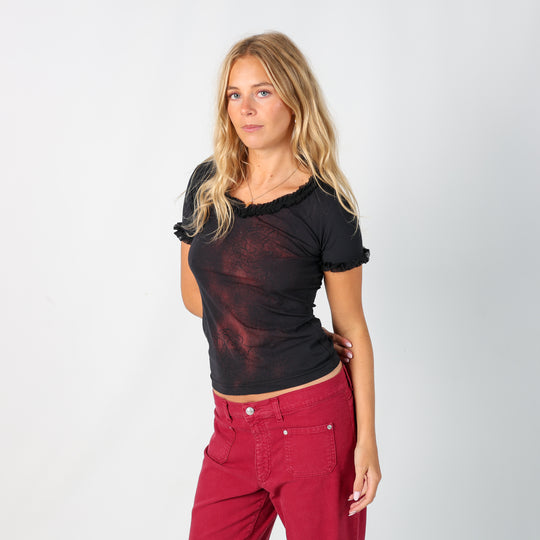 Black y2ks Wangli Blouse Sheer Sequin (L)