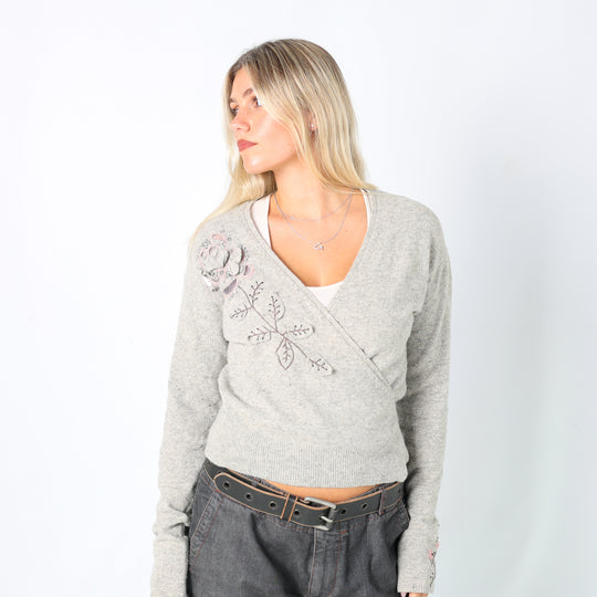 Light Grey 90s Liu Jo Knitted Top Sequin Detail (M)