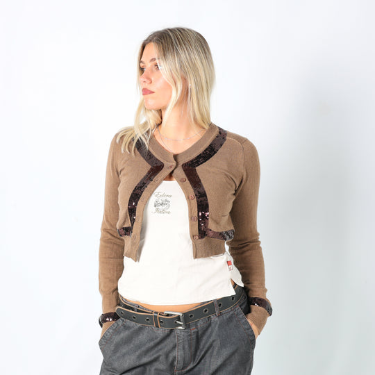 Brown y2ks Twins Knitted Top Sequin Detail (S)