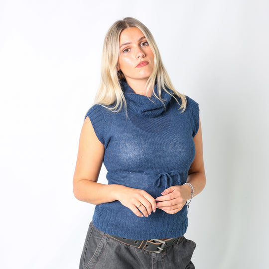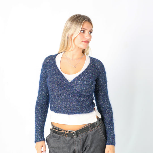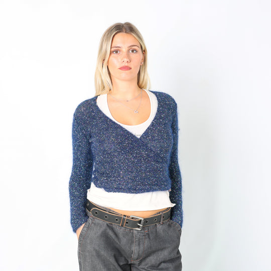 Navy Blue y2ks Seventh Heaven Knitted Top Sparkle (M)